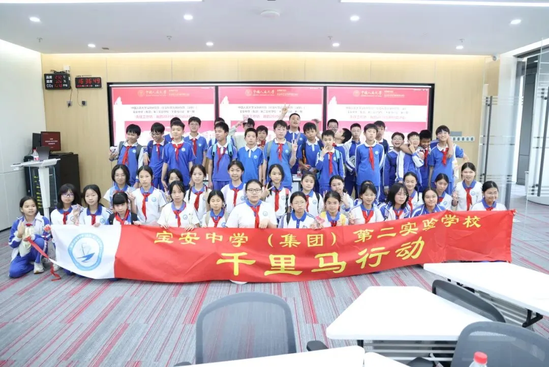 2026年3月19日下午,中国人民大学深圳研究院携手宝安中学(集团)第二实验学校,开展“先锋课堂”主题研学之“千里马特别专场”第一期活动。该活动是深圳研究院携手宝中二实,为该校“千里马行动”首期学子量身定制的一场别开生面的双期联动合作课程。本期课程紧扣“连接世界,创新未来,繁荣家国——APEC视野下的新时代青少年思政教育”这一核心主题 ,作为中国人民大学深圳研究院推进教育模式创新的又一实践,将人大优质的人文底蕴与先锋教育理念深度结合,通过“实践探访+思想启迪”的独特模式,带领学生们在历史与未来、家国与世界之间自由驰骋。