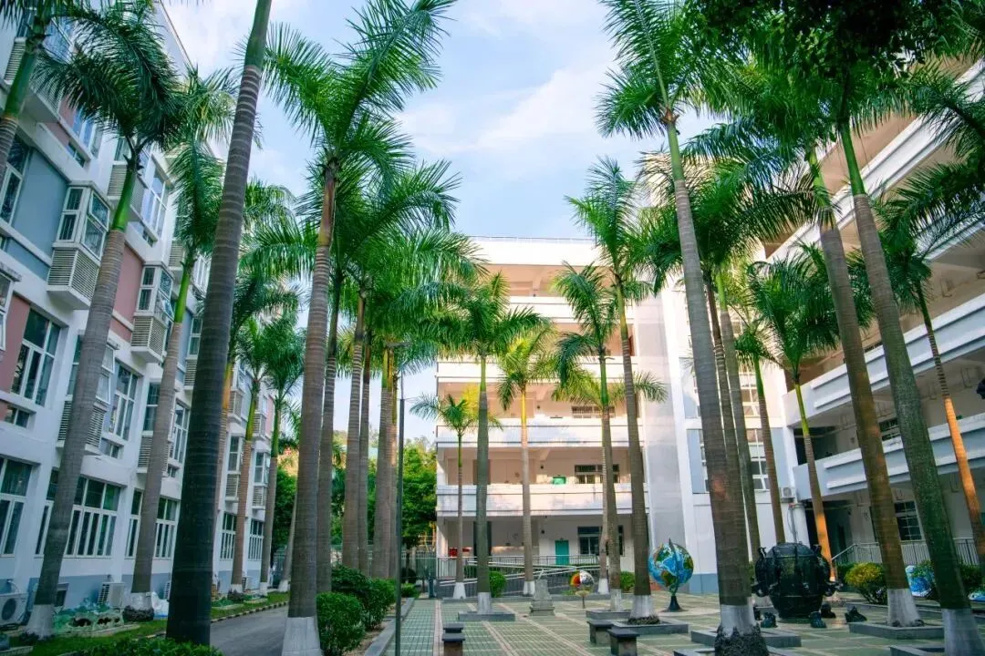 校园整体设计简洁大气,教学楼、实验楼、行政楼等功能区布局合理,配备多媒体教室、多功能报告厅等。国际课程班拥有专属教学楼和活动空间,融合国际化教育元素。校内绿化覆盖率高,种植多样植被,建有花园、草坪和休憩长廊,营造宜人的学习环境。