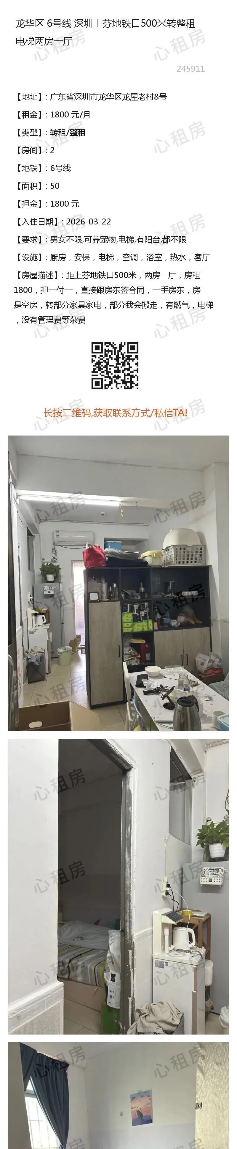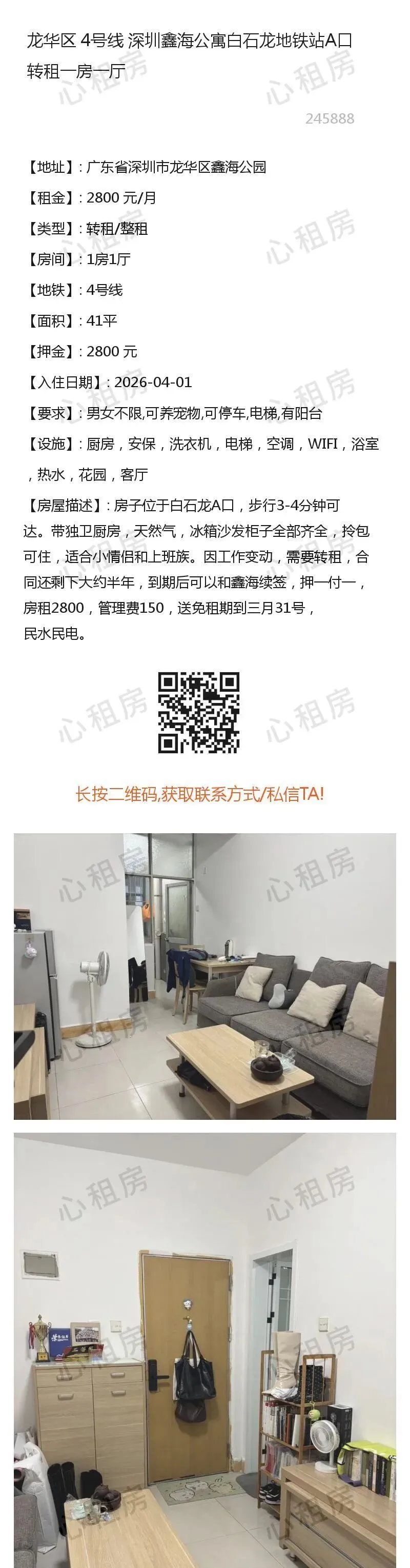 深圳租房【龙华5则】房源①:4号线深圳龙华白石龙地铁站A口转租一房一厅2800元/月;房源②:…