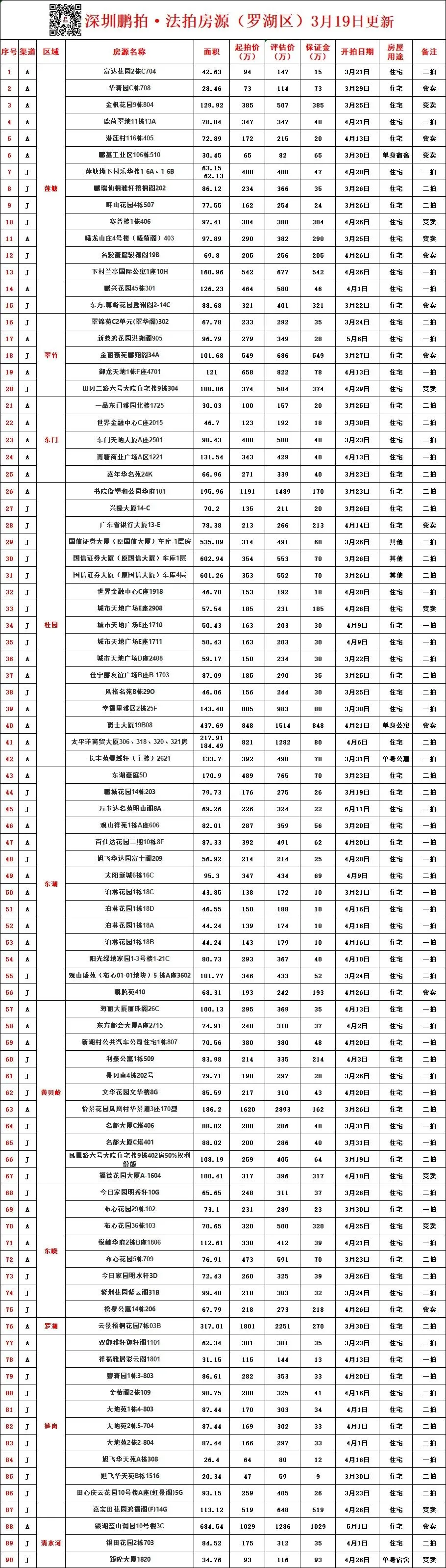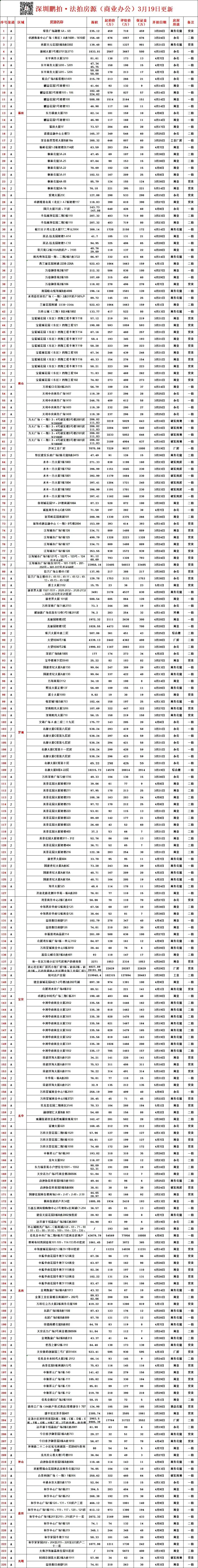 >深圳各区所有法拍房源统计-3月19日