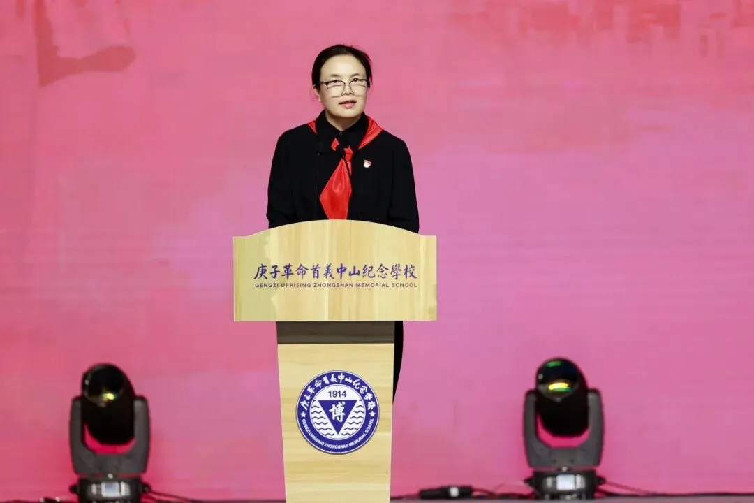 活动在庄严的国歌声中启幕。学校党支部书记、校长龙波涌致辞,回溯校史与庚子革命的渊源,寄语中山学子将个人理想融入民族复兴,勇担时代使命。