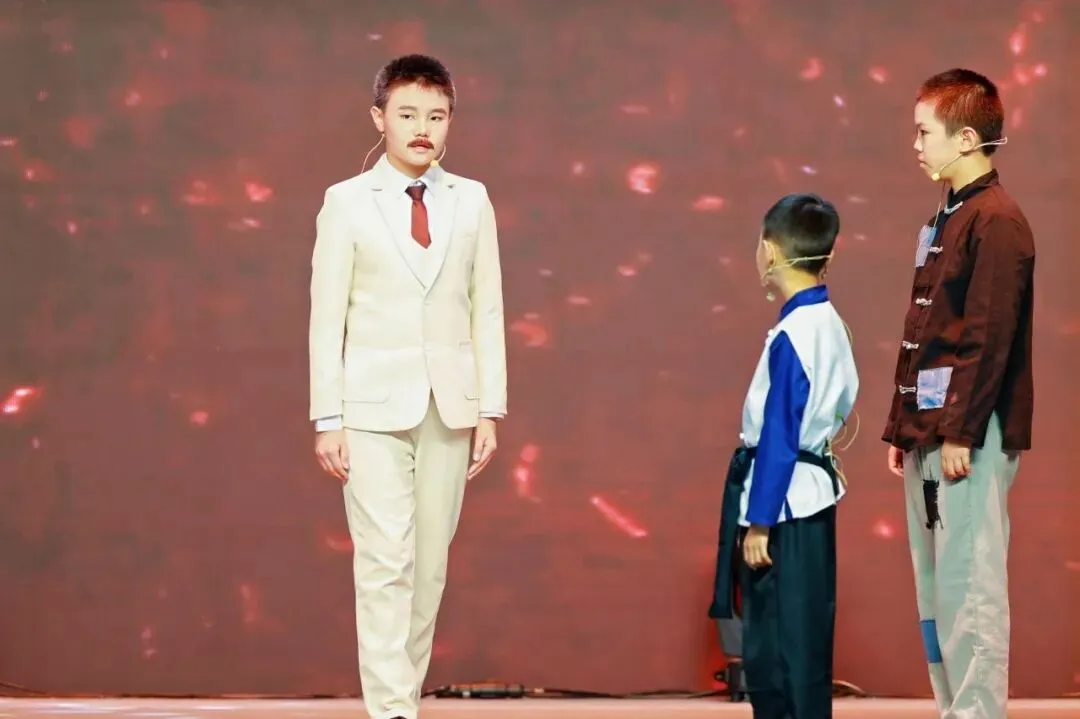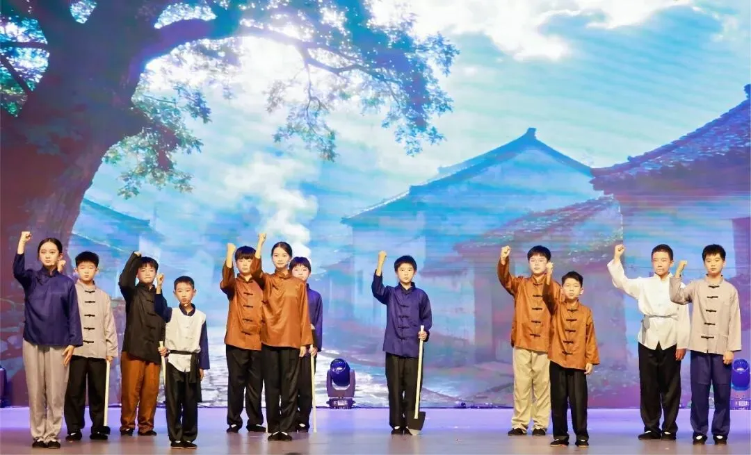 将时光拉至1912年,展现孙中山办学初心,舞台上现代少先队员与历史人物展开跨时空对话,先辈们的夙愿在新时代一一实现。武术《强国志》刚劲有力,一招一式尽显中华少年的意气风发。
