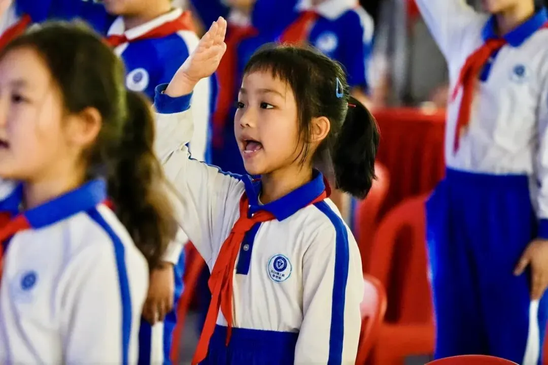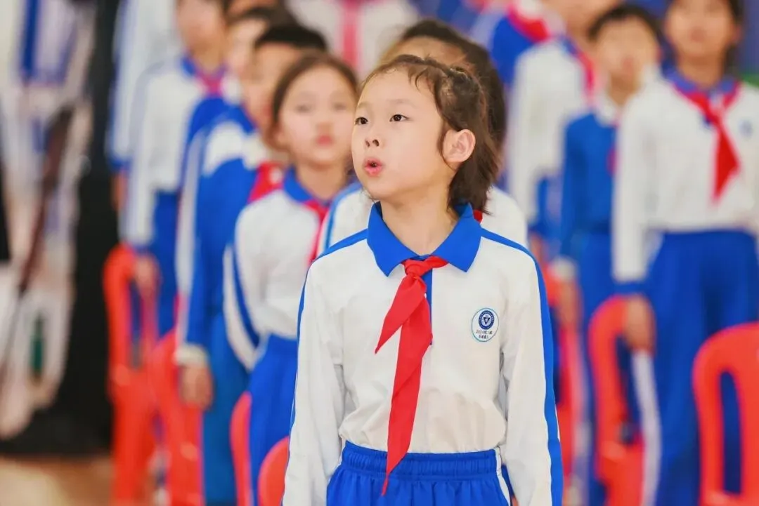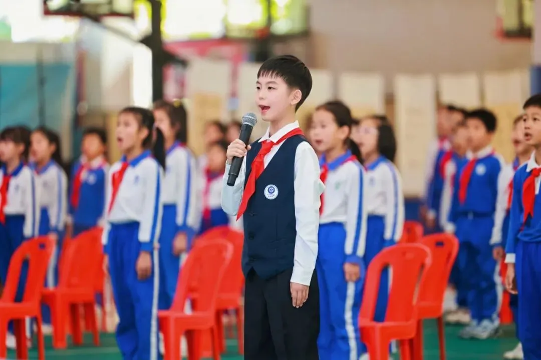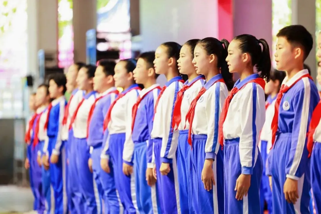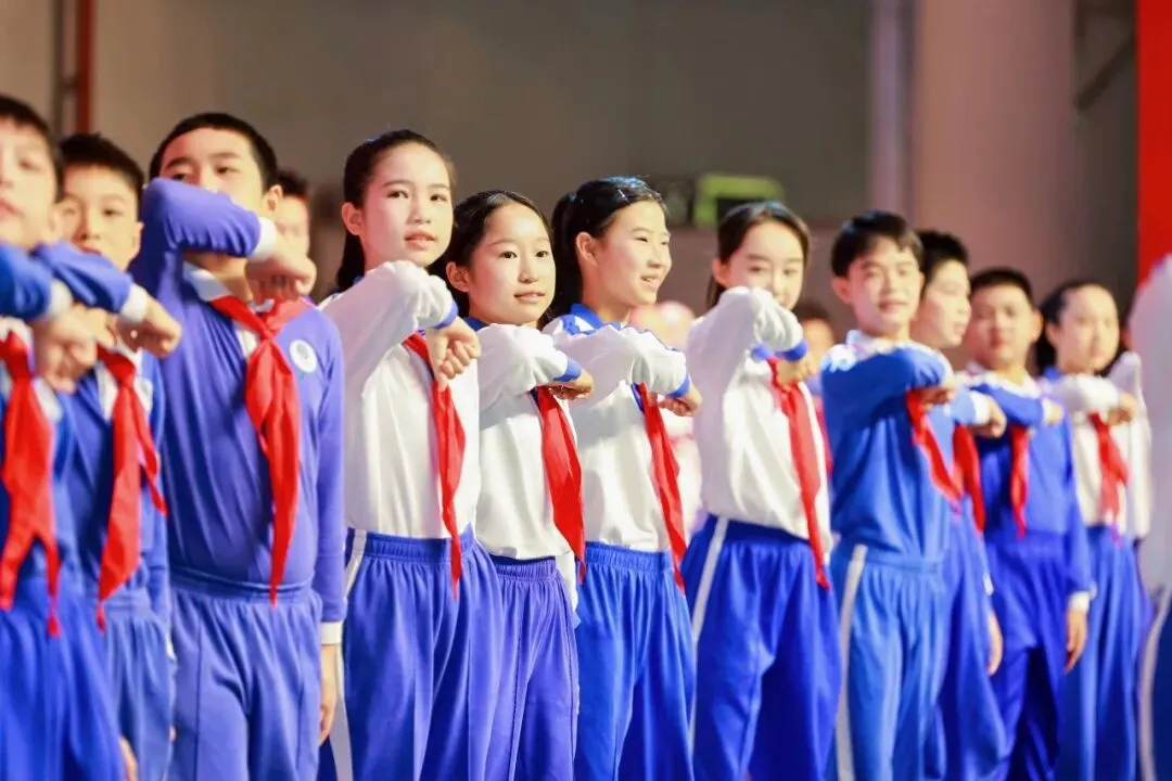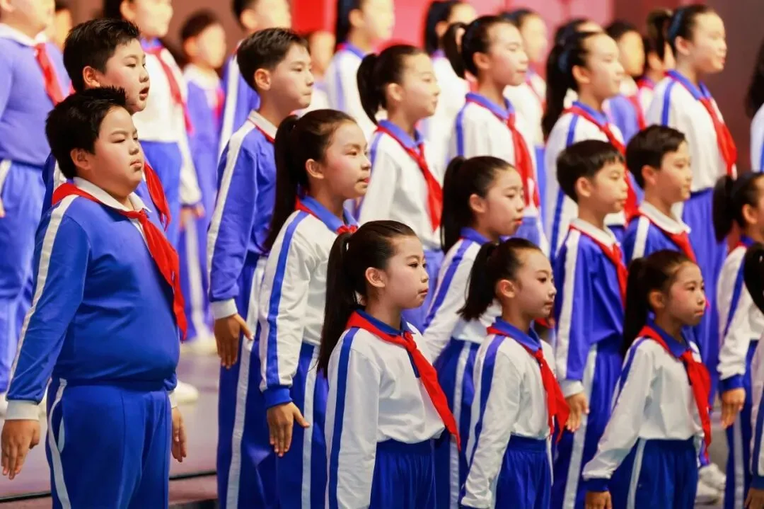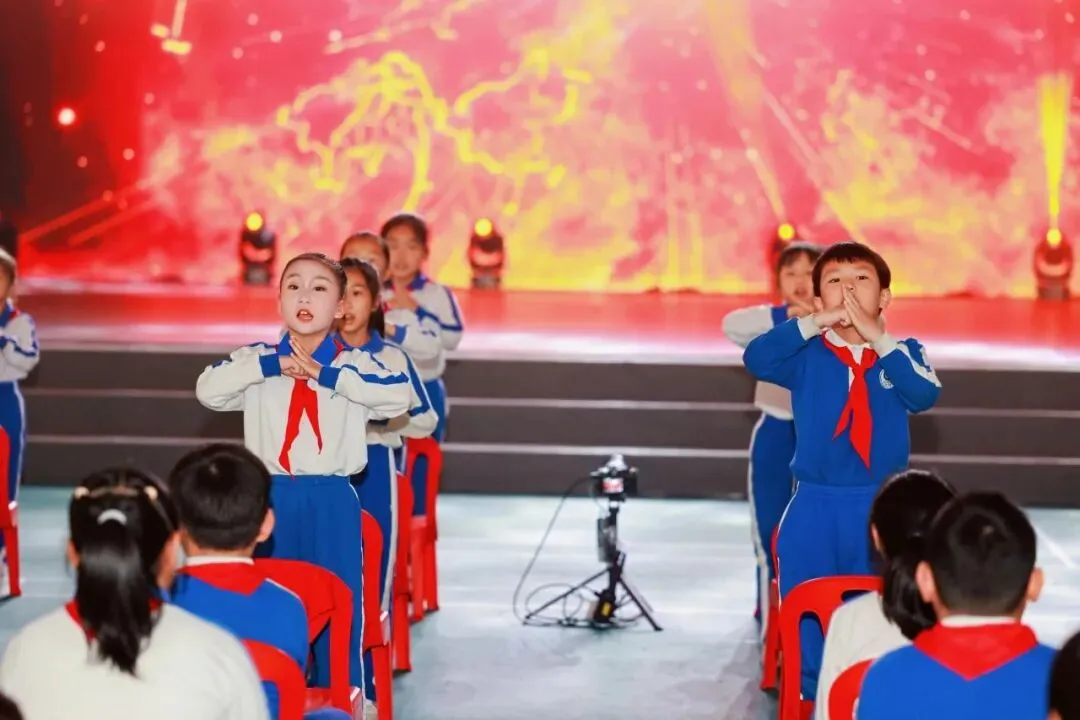 活动尾声,警世钟声三响,一响铭记历史,二响敢为人先,三响振兴中华。全体少先队员高举右拳,庄严宣誓,“为实现中华民族伟大复兴的中国梦,时刻准备着!”。全场齐唱《歌唱祖国》,巨幅国旗投影铺展,定格庄严时刻。