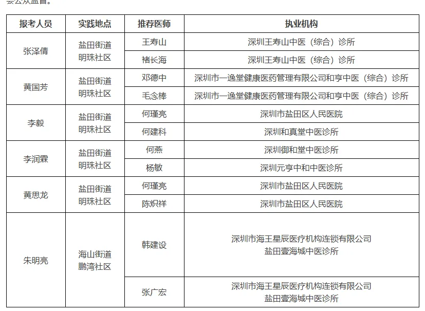 具体内容请关注公众号【医掌握教育】,报考详情咨询下方微信 本公示时间为2025年3月3日至3月7日,公示期为5个工作日。公示期内如有异议,异议人应当在公示期满前向我局反映。举报电话:0755-25226908,联系人:孙女士。对举报涉嫌虚假信息行为,将按照卫生部令第52号及我省关于传统医学师承和确有专长人员医师资格考核考试实施办法的要求进行处理。