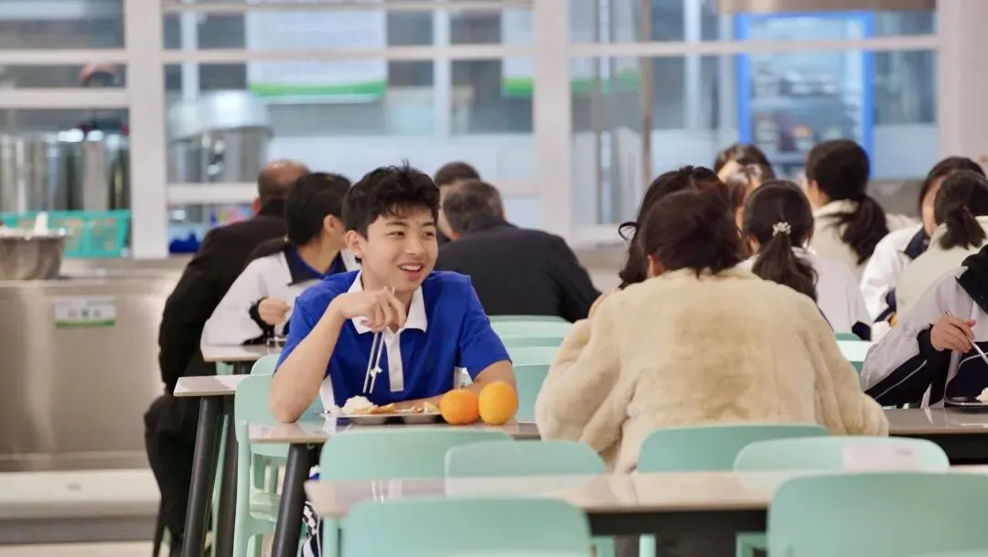 早餐20个品类、中晚餐各8个品类+水果,实行自助取餐,师生同餐;定期开展“美食意见征集”,根据学生需求调整菜品,严格落实“光盘行动”。