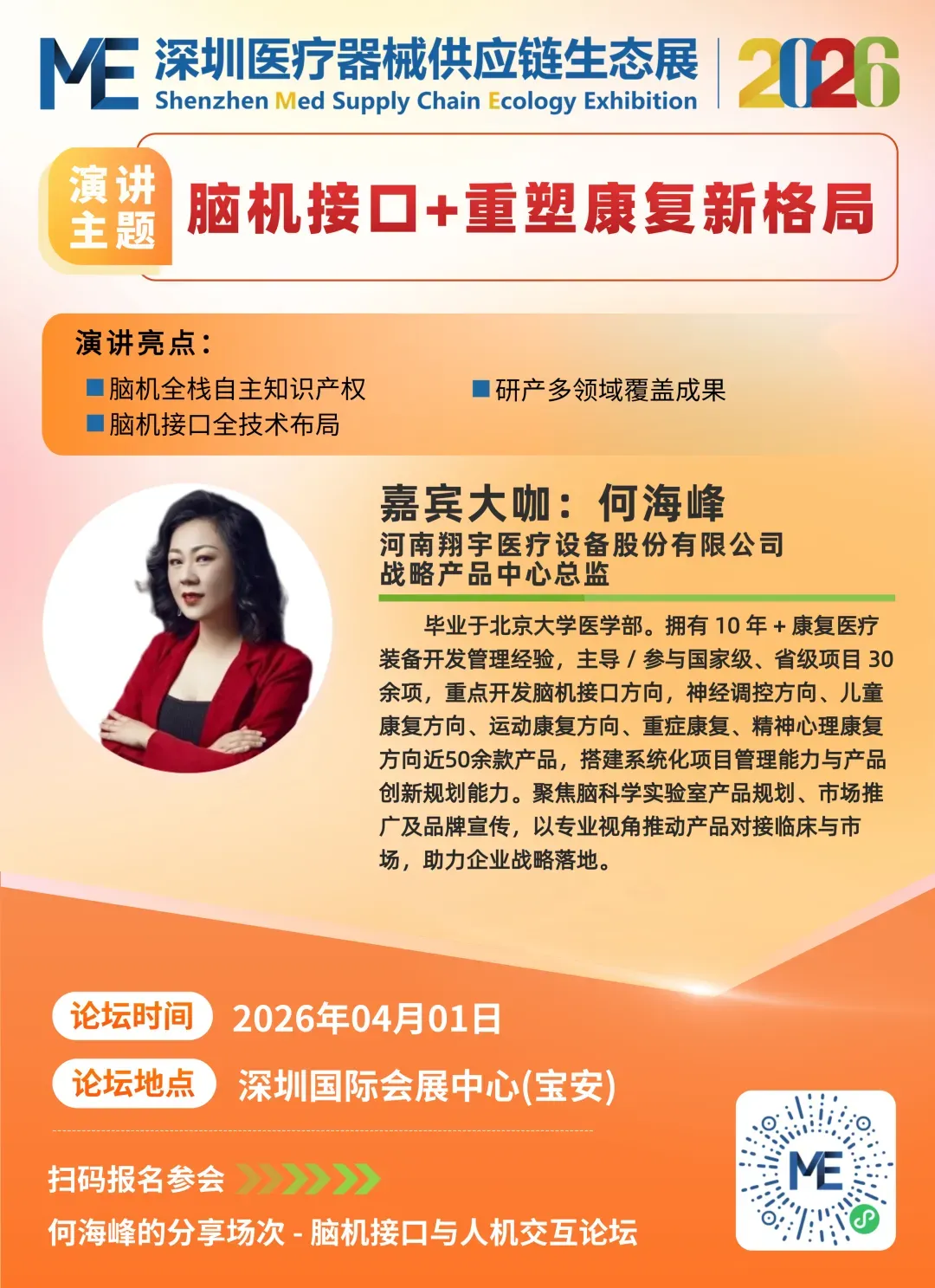 14:50 | 15:10 | 脑机接口+重塑康复新格局 | 何海峰 河南翔宇医疗设备股份有限公司 战略产品中心总监 |