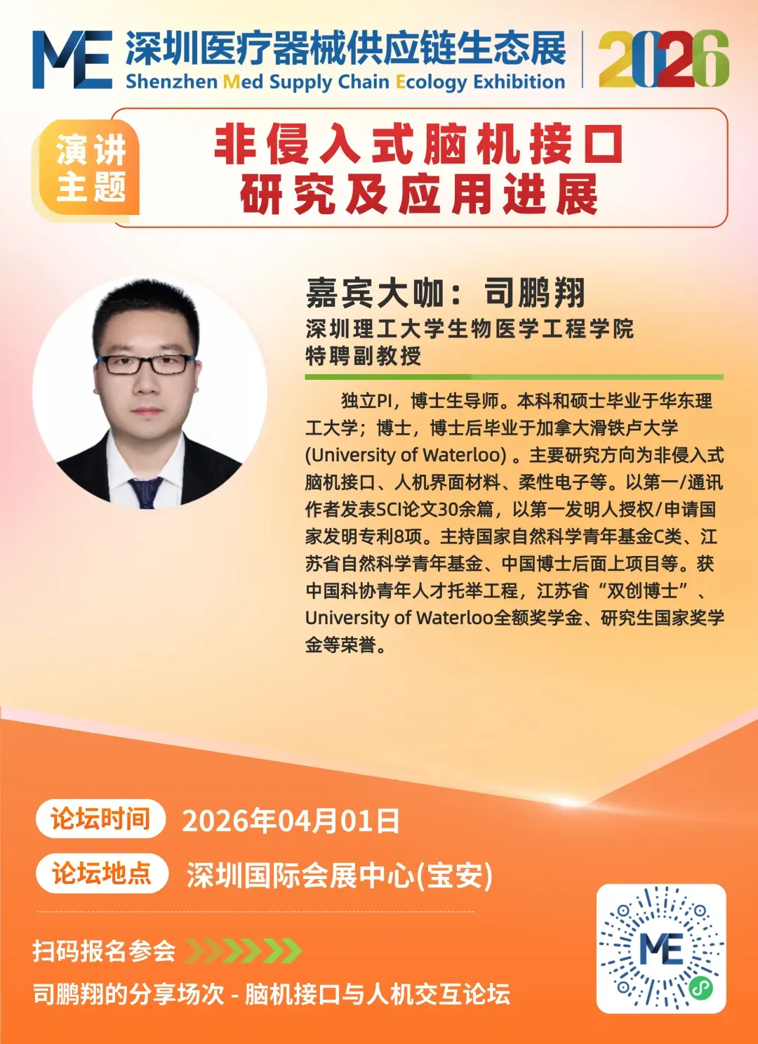 15:30 | 15:50 | 非侵入式脑机接口研究 及应用进展 | 司鹏翔 深圳理工大学 生物医学工程学院 特聘副教授 |