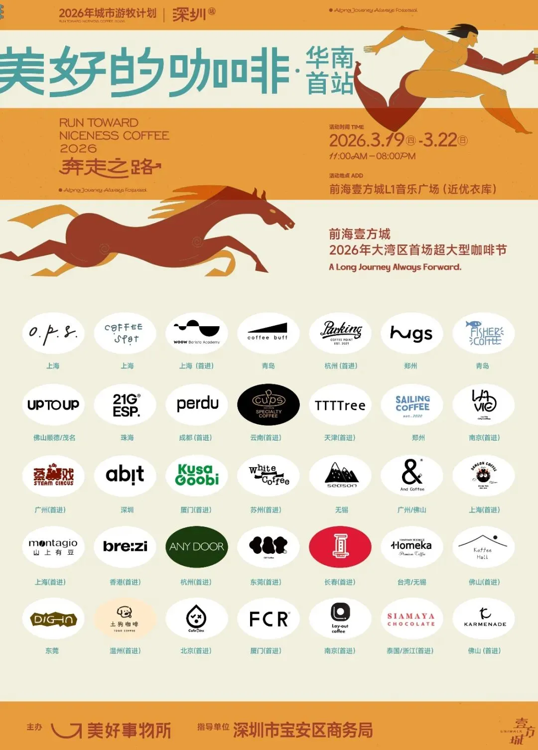 80+品牌阵容:o.p.S.、season coffee、CoffeeSpot、AndCoffee 啱D咖啡、WOOW咖啡培训学院、DRAGON COFFEE、coffee buff、montagio 山上有豆、Parking Coffee、brezi、HUGS、ANYDOOR、FISHER COFFEE、C&T COFFEE LAB、UPtoUP、72 COFFEE•柒拾贰咖啡、21G ESP.、Homeka家加咖生活、perdu、Koffee Hall、Cupps Coffee、DIGIN COFFEE咖啡拍、TTTIree、TOGO COFFEE土狗咖啡、SAILING COFFEE、CafeWins、La Vie City Coffee、FCR深城市、STEAM CIRCUS 蒸戏咖啡、lay-out coffee 躺平咖啡、abit、Siamaya chocolate暹罗玛雅巧克力、KusaGoobi、KARMENADE、White Coffee 白咖啡