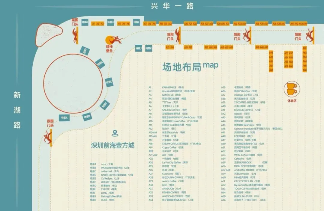 场地布局图,做好攻略开园就可以去买自己喜欢的咖啡啦。今年的美好咖啡节有很多首进的品牌,不妨可以试一试。