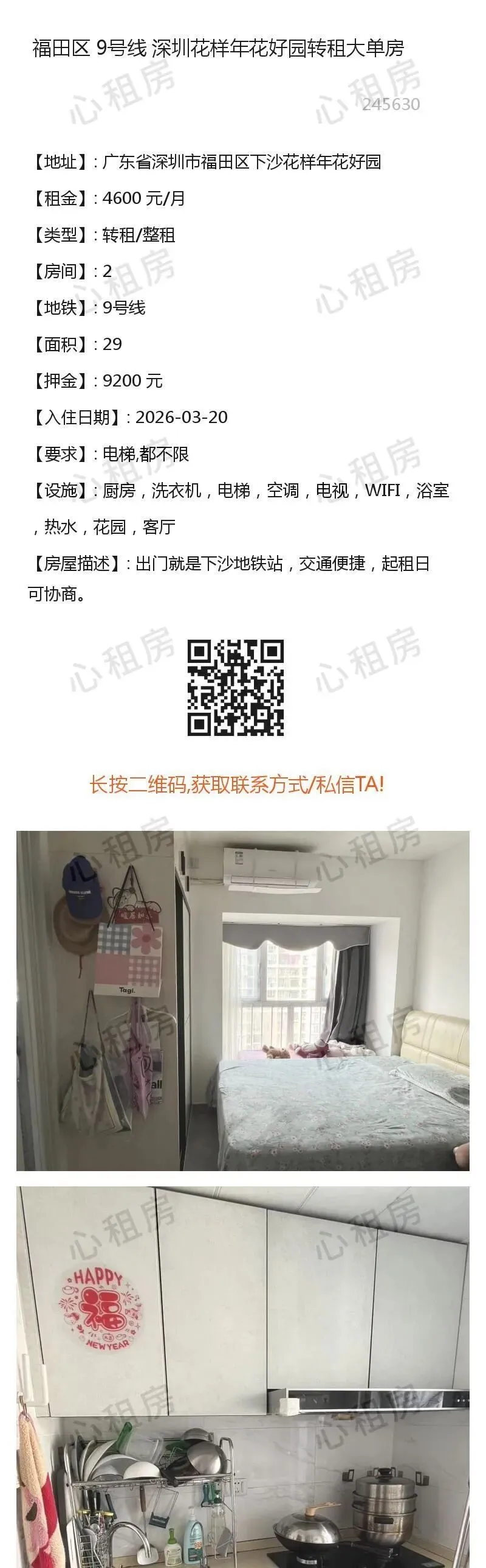 深圳租房【福田4则】房源①:9号线深圳福田花样年花好园转租大单房4600元/月;房源②:…