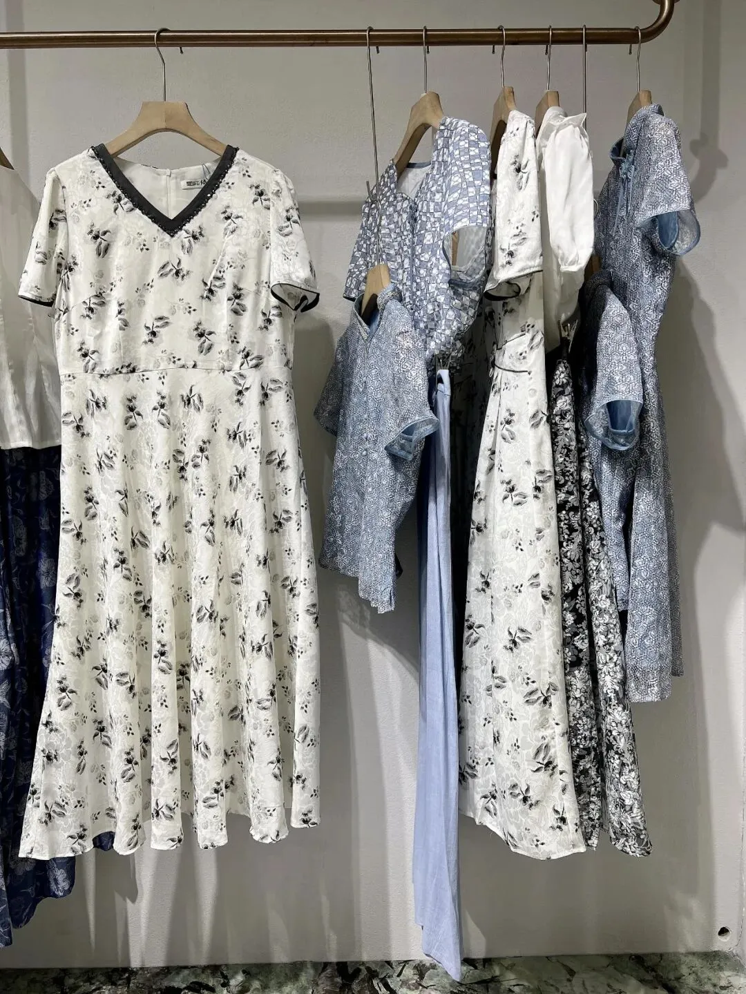 比例:连衣裙42%,旗袍11%(含醋酸面料的),上衣34%,裤裙13%,一份261件!