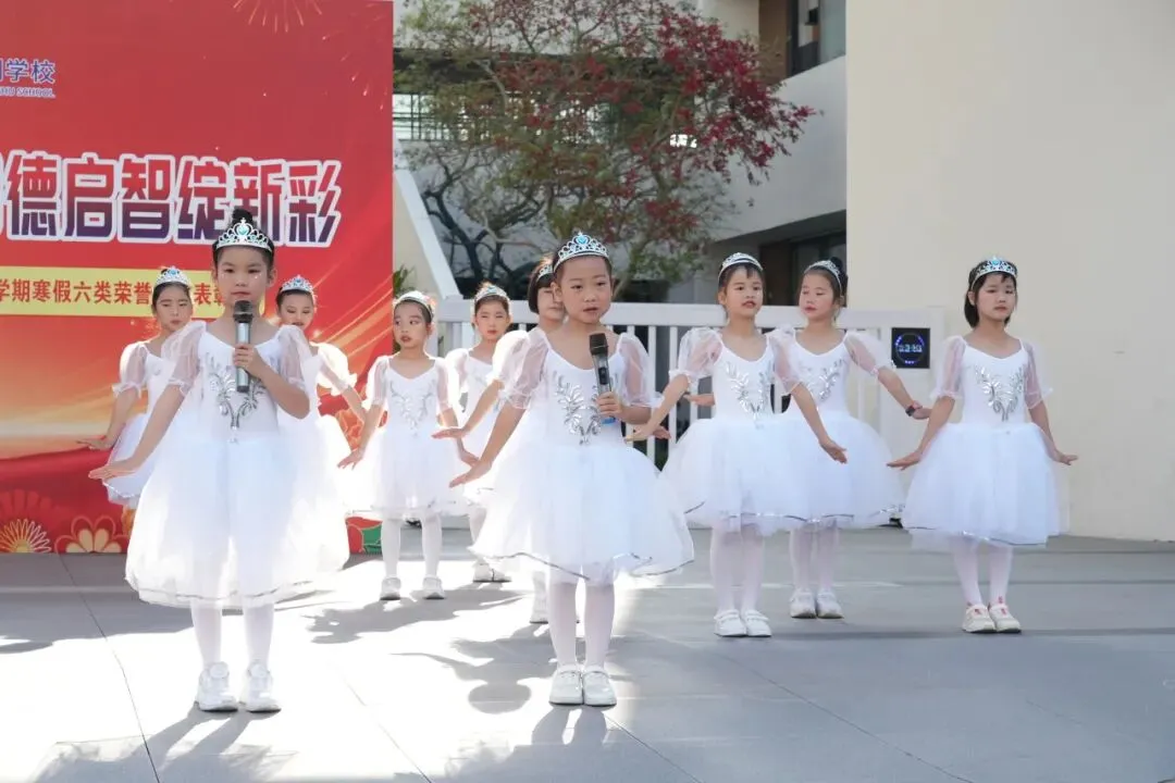 晨会在庄严的国歌声中正式拉开帷幕。学生处艾姗娜主任首先宣读寒假六类荣誉表彰决定,对在“可爱书虫”“环保达人”“作业标兵”“特长超人”“爱心天使”“优雅学子”六大领域表现优异的学生,以及午唱、两操、卫生、礼仪四类示范班集体进行表彰,以榜样力量引领全体学子向上成长。