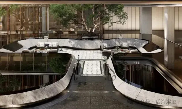 在空间营造层面,项目开创性构建了“生机底盘”体系,依托“地上三层、地下三层”的立体复合结构,实现从地下空间至空中花园的纵向贯通与垂直延伸。车库、商业、园林景观及多元配套功能在此实现垂直叠加与有机融合,打造出一座立体化的生活场景。其中,地下空间创新运用“生境之斗”设计理念,可将自然光线与绿植景致引入地下,塑造出通透灵动、充满活力的地下空间氛围。
