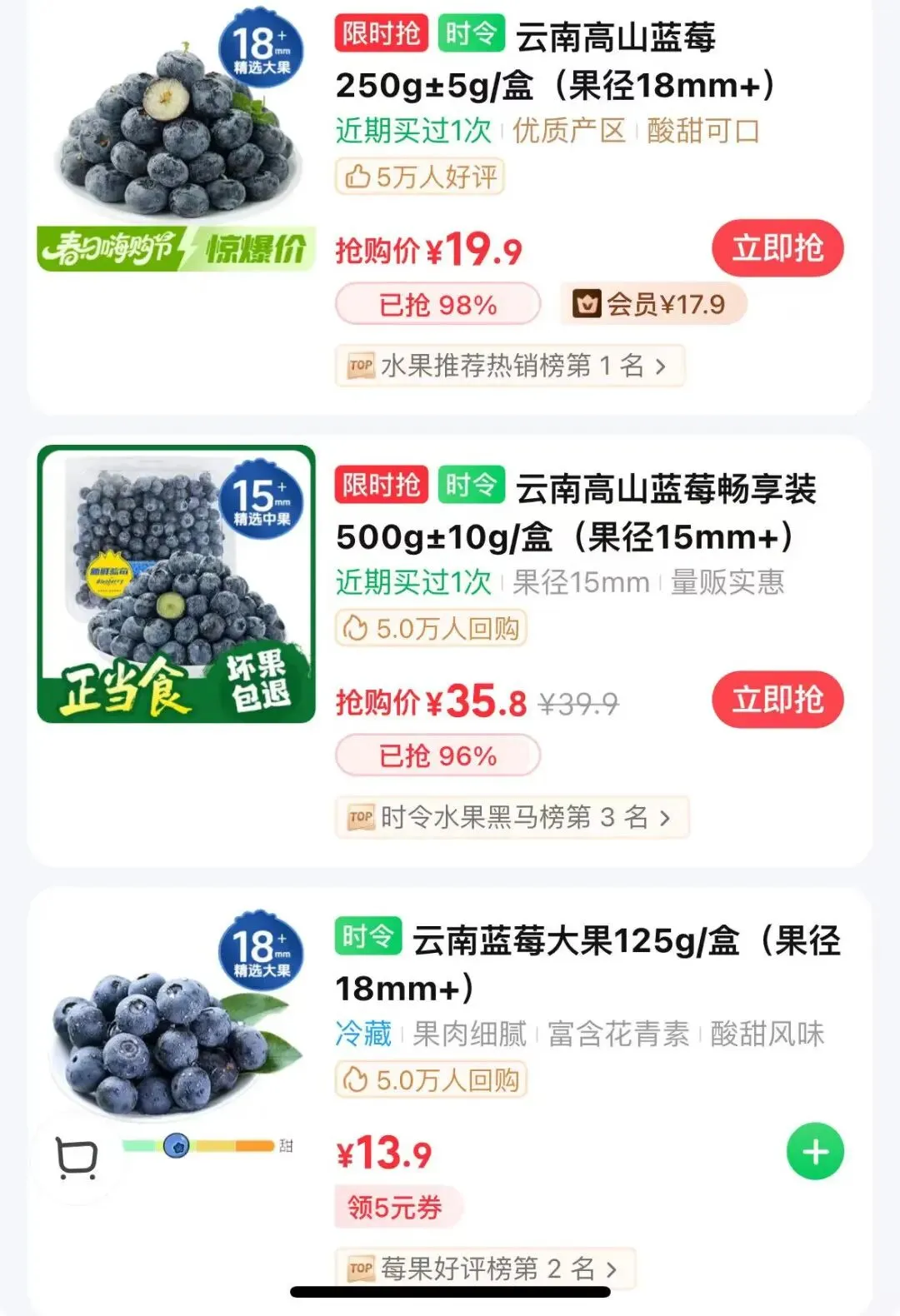 查看蓝莓价格时