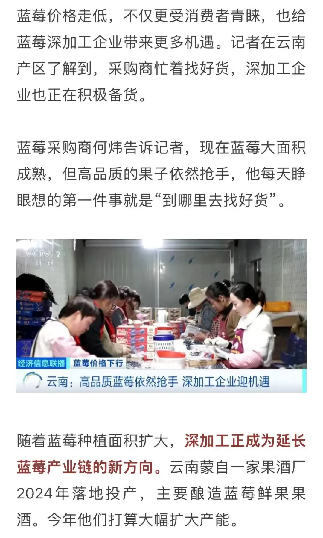 云南蒙自某蓝莓酿酒厂总经理 苏润秋:2026年,随着蓝莓种植面积的扩大,产能应该再翻一倍左右。