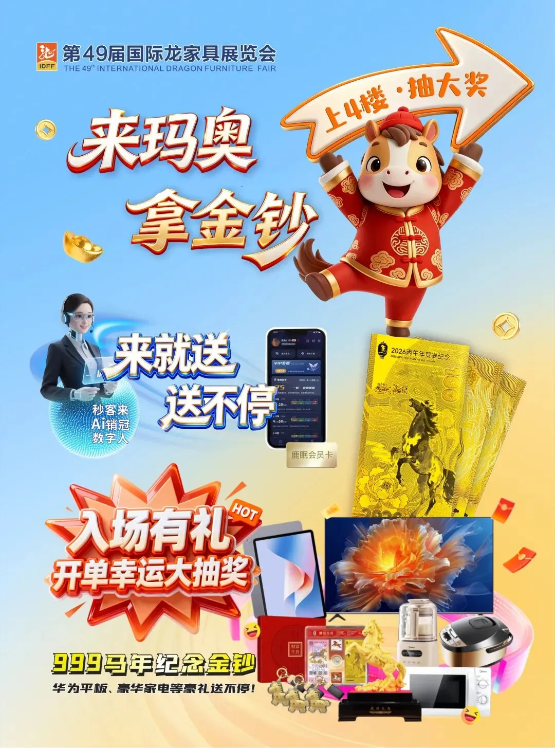 第49 届国际龙家具展览会将持续至3 月20日,玛奥汇展中心以硬核的 AI 科技、丰富的潮流新品、缤纷的同期活动,为全球家居客商打造一场精彩纷呈的产业盛宴。