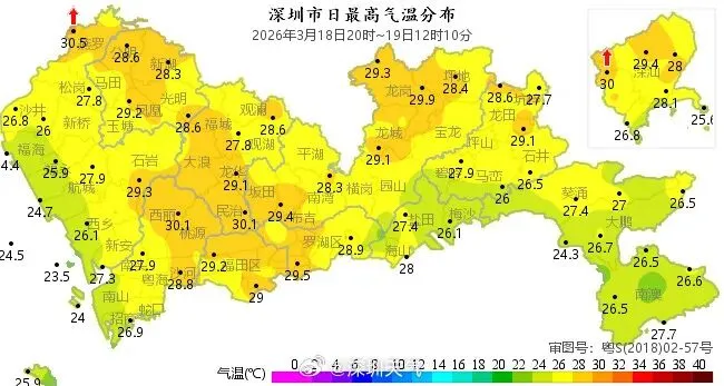 局部地区突破了29℃