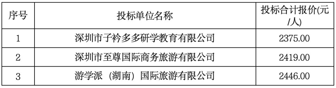 深圳市龙华职业技术学校学生研学实践活动服务中标结果公告