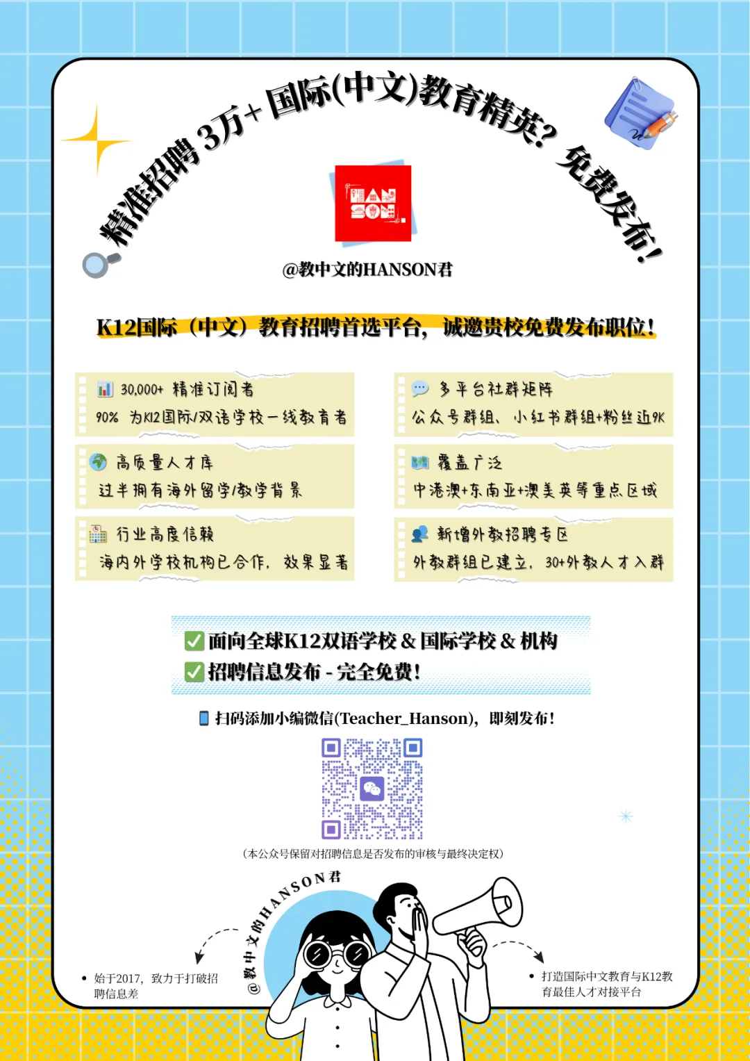 【注:应聘时可说明来自“教中文的Hanson君”公众号】