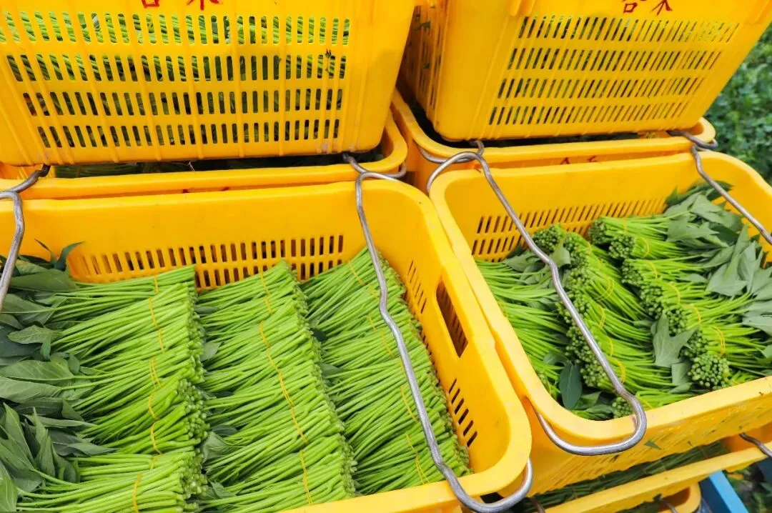 据介绍,横水村合禾蔬菜基地依托当地优良的水土资源,坚持绿色生态种植理念,打造纯天然、无公害蔬菜生产基地。目前基地种植品类丰富,以当下热销的番薯叶为主,同时轮作种植丝瓜、茄瓜、节瓜、南瓜、西兰花等多个优质品种,实现错峰上市、持续供应。预计再过一个月,丝瓜等瓜类蔬菜也将迎来批量采收,陆续供应深圳、香港市场。