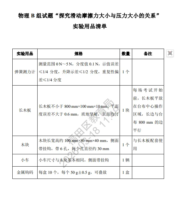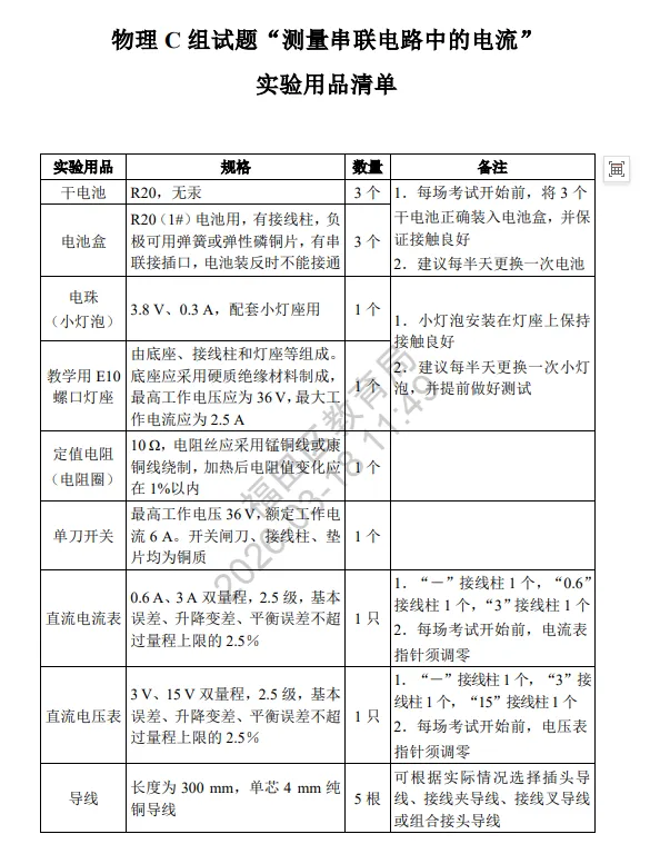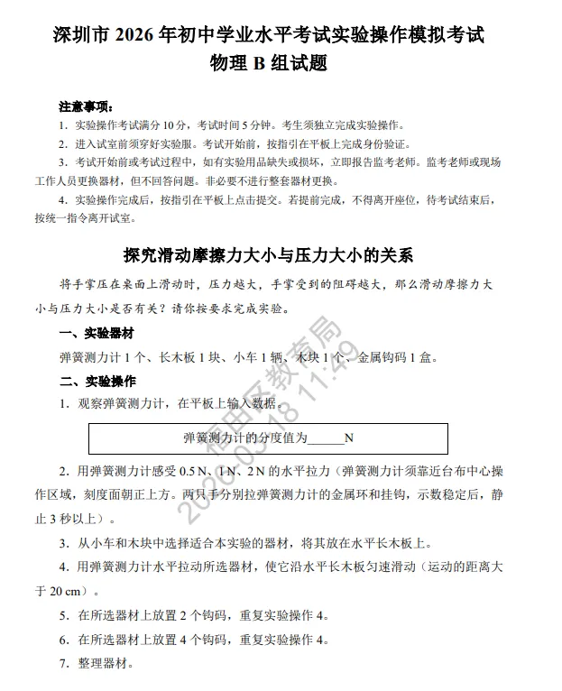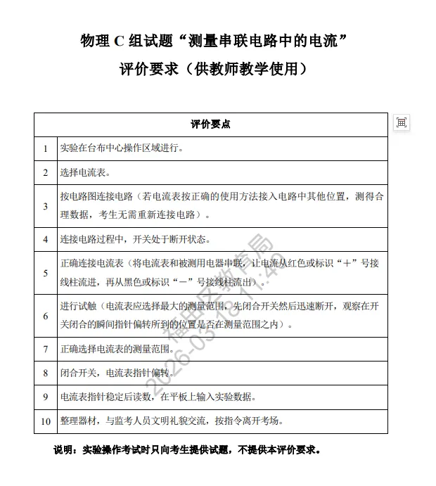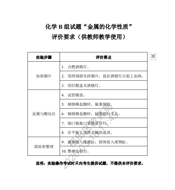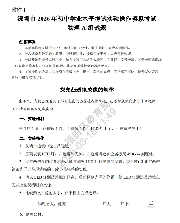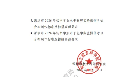 >2026年深圳市理化实验操作考试说明(附详细内容及评价标准)