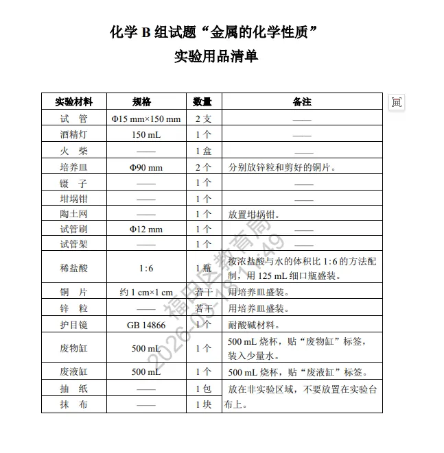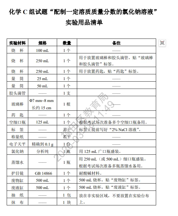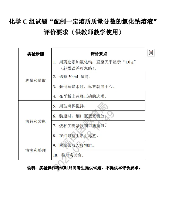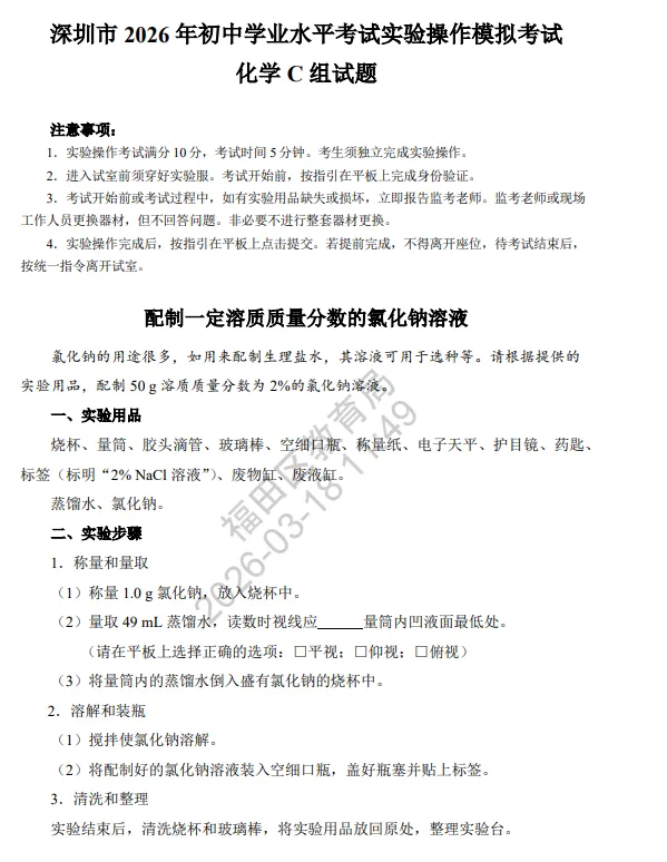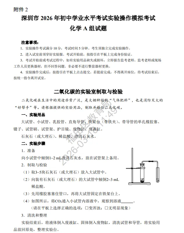 2026年深圳市理化实验操作考试说明(附详细内容及评价标准)