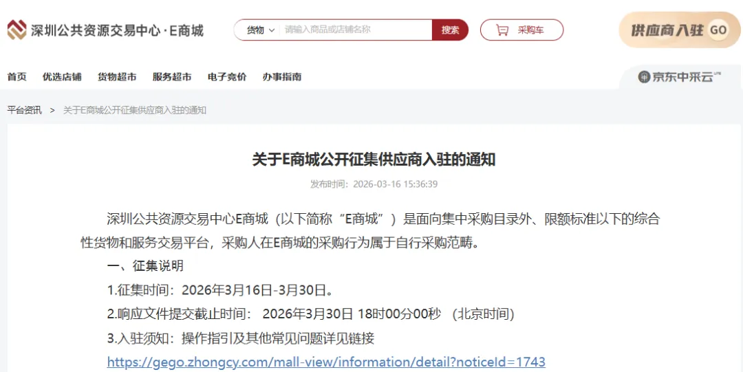深圳E商城限时征集供应商!
