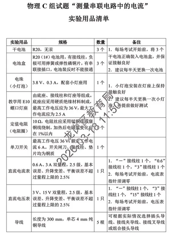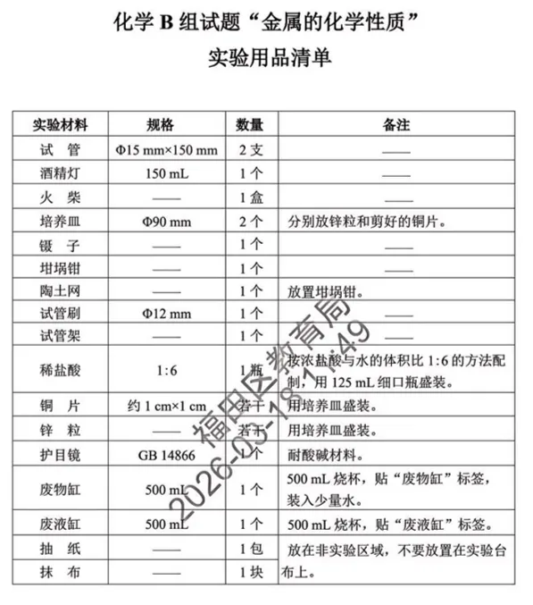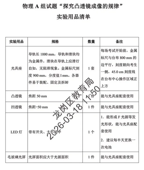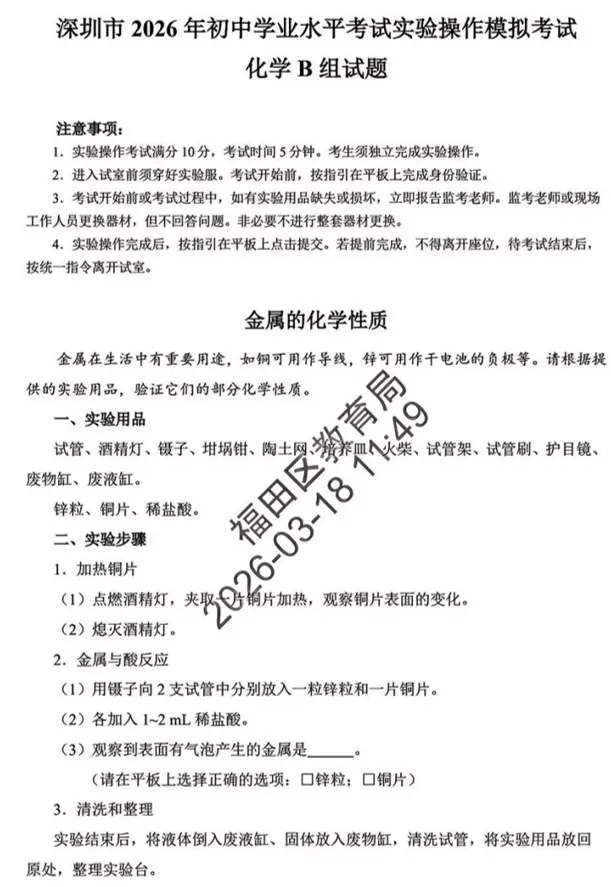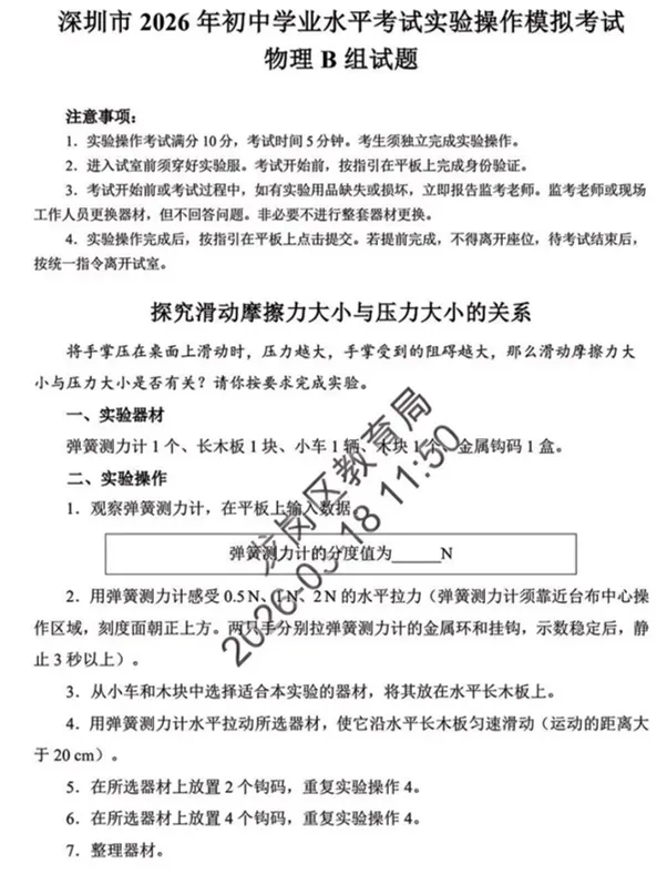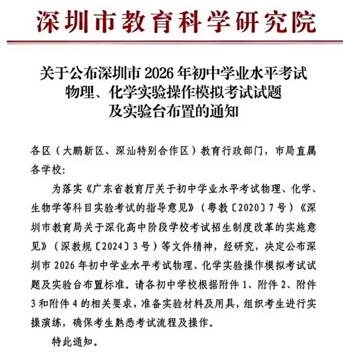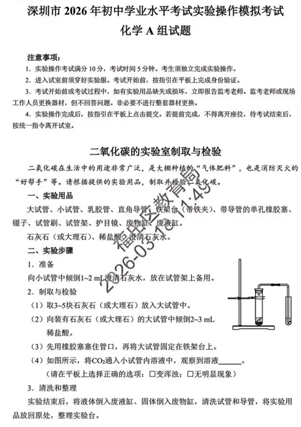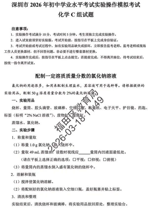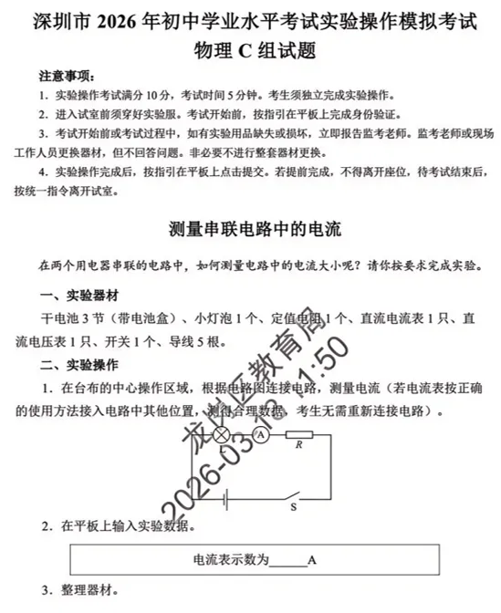 深圳市2026年中考《物理》《化学》实验操作模拟考试试题已经出炉并发布到各校