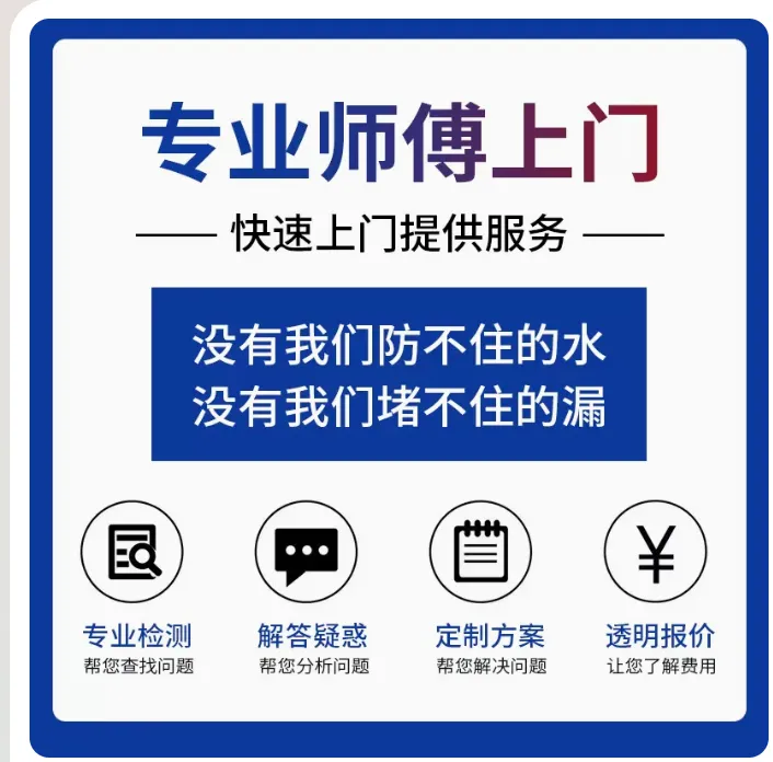 🔍 免费检测,透明报价 我们坚持"先检测、后报价、再施工"的原则。师傅上门后,会先对漏水点进行专业检测,明确问题根源,然后提供详细的维修方案和透明报价,绝无隐形消费,让您明明白白消费。 🛡️ 优质材料,质保承诺 我们选用国内一线品牌防水材料,质量有保障。施工完成后,我们提供书面质保承诺——屋顶、卫生间等关键部位质保5-10年,让您无后顾之忧。 🛠️ 我们的服务范围 服务项目具体内容 屋顶防水平屋顶、斜屋顶、金属屋面防水补漏,天沟、檐口维修 卫生间防水地面、墙面防水重做,管道周边密封,免砸砖防水技术 外墙防水外墙裂缝修补,窗框密封,外墙涂料防水处理 地下室防水渗水堵漏,防潮处理,排水系统优化 阳台/露台防水重做,排水口疏通,地面防滑处理 厨房防水橱柜底部防潮,地面墙面防水维修