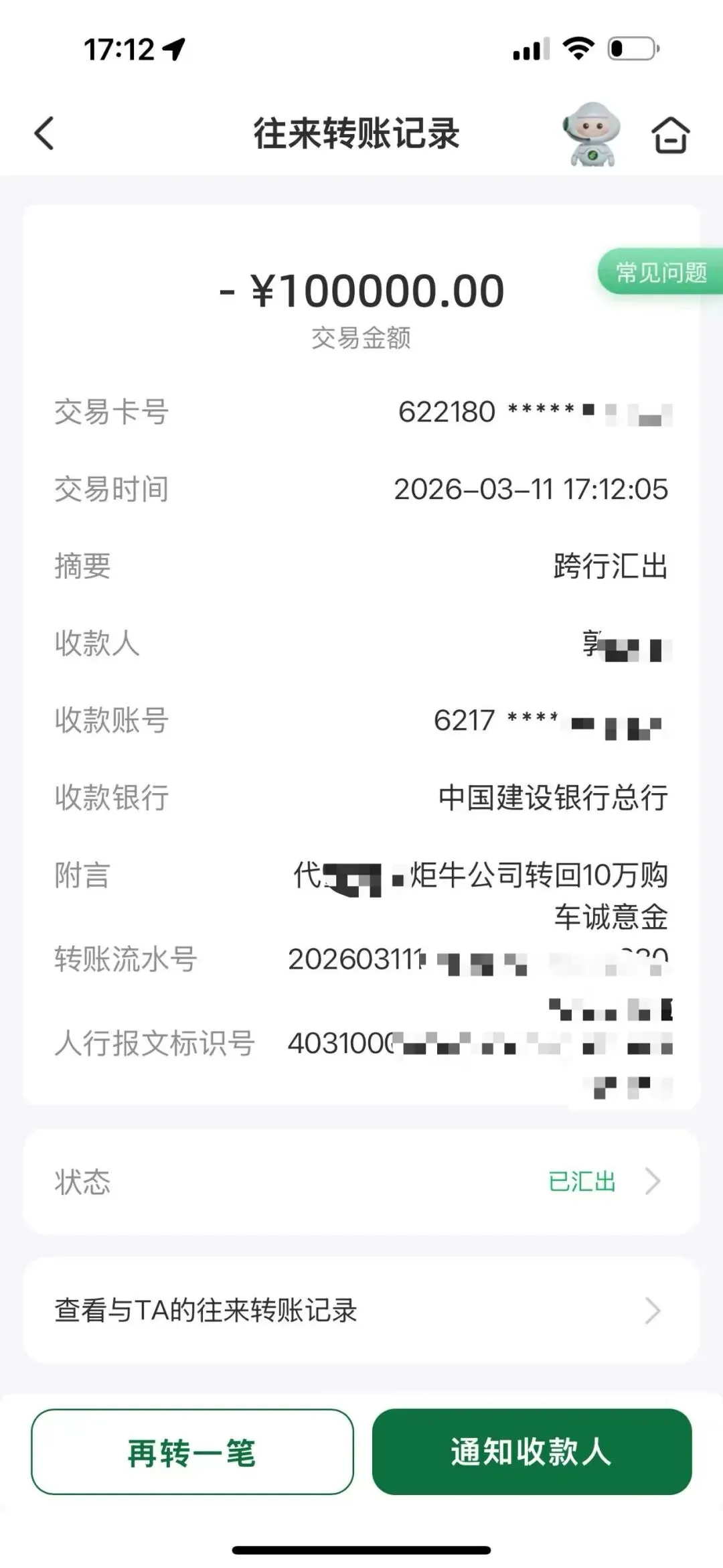 铁铁反映,第一次现场交涉时,其与团队就遭到对方人员推搡辱骂,为避免冲突升级,铁铁选择先行离开。之后经过沟通协商,对方口头承诺退还定金,并要求消费者删除维权视频、签署调解协议,声称“10分钟内到账”。消费者按要求删除视频、签署协议后,定金却迟迟未到账,拖延数小时仍无结果。