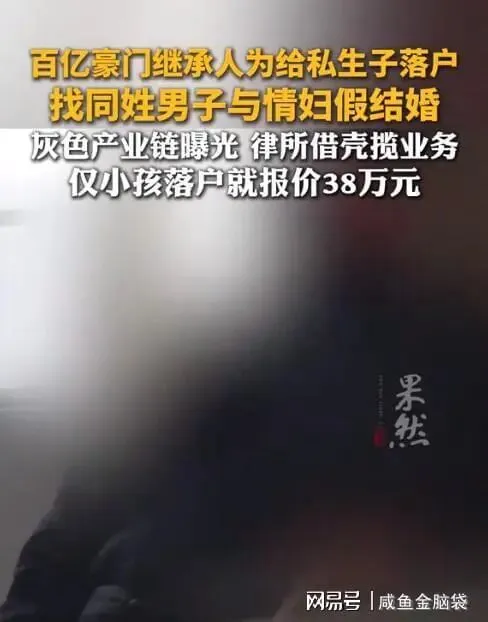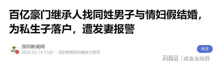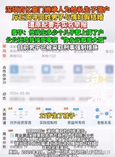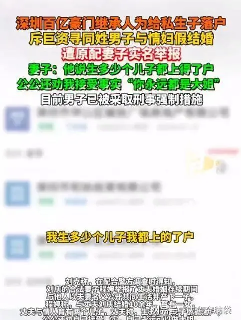 深圳新闻网:百亿豪门继承人找同姓男子与情妇假结婚,为私生子落户,遭发妻报警