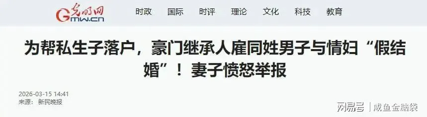 光明网:为帮私生子落户,豪门继承人雇同姓男子与情妇“假结婚”!妻子愤怒举报