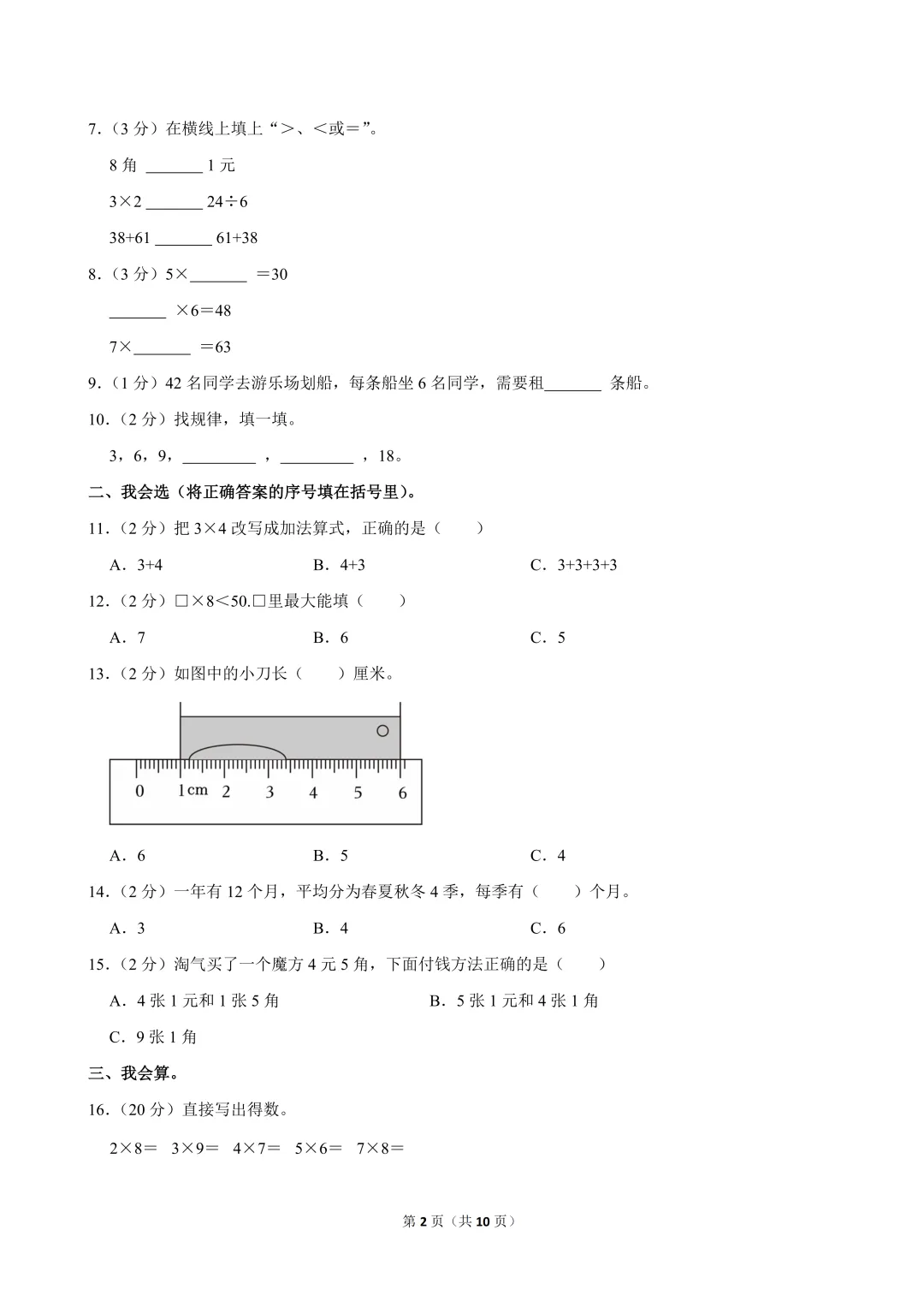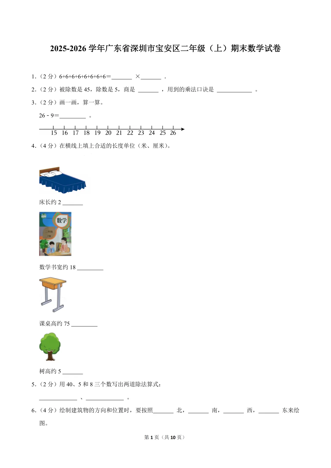 2025-2026学年深圳市宝安区二年级(上)期末数学试卷及答案解析