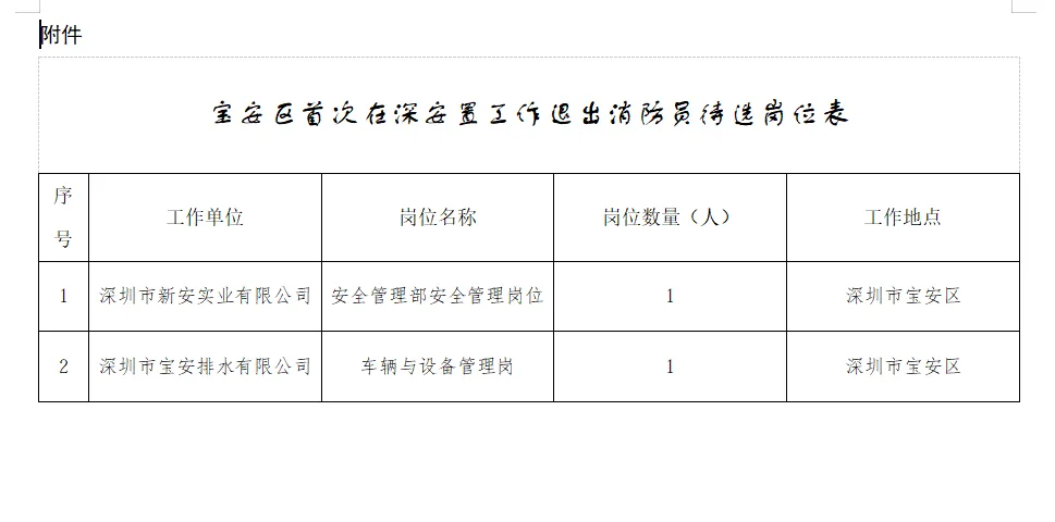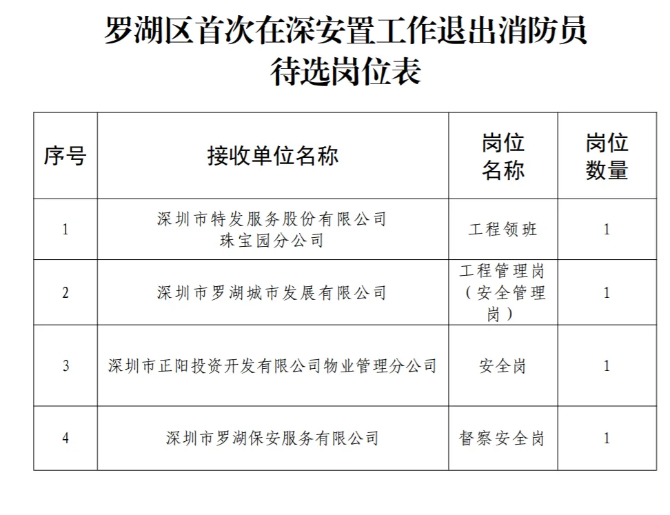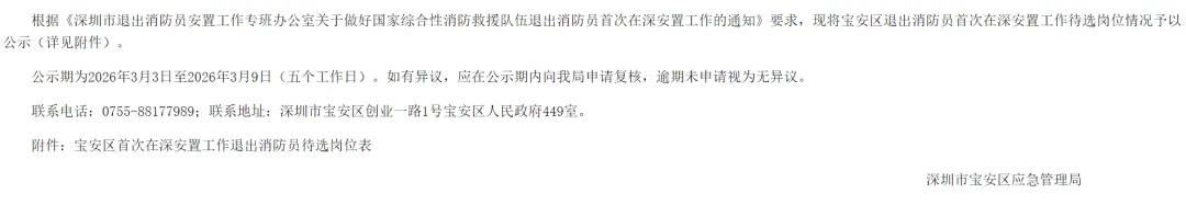 【广东省深圳市宝安区、罗湖区、光明区】2026年度(2025年)退出消防员安排转岗安置岗位、量化评分公示