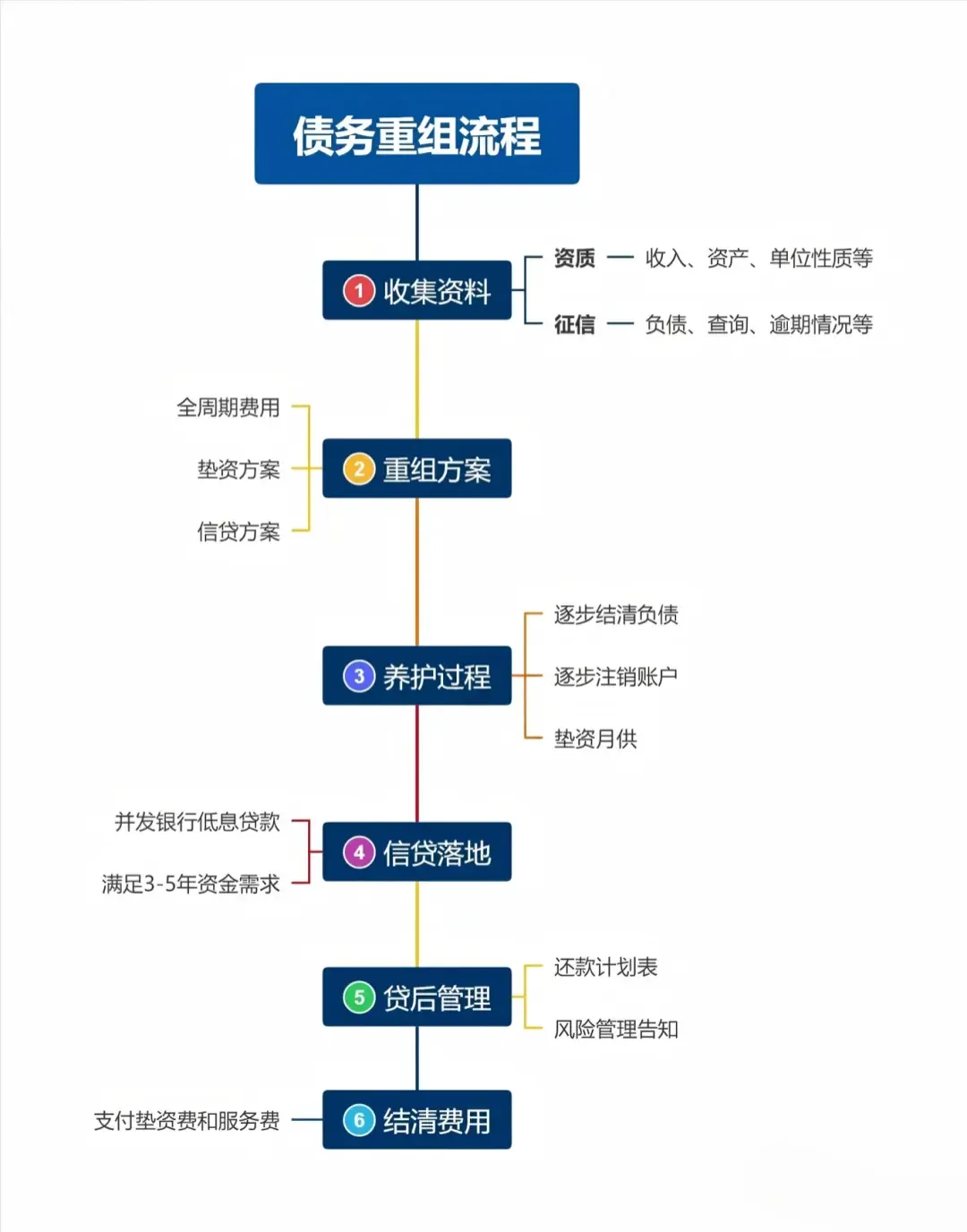 养护征信的目的就是做信贷,完美征信,才能最大限度的并发出低息贷款 , 重组后一般都会尽贷,一方面是结清服务费和垫资费 :