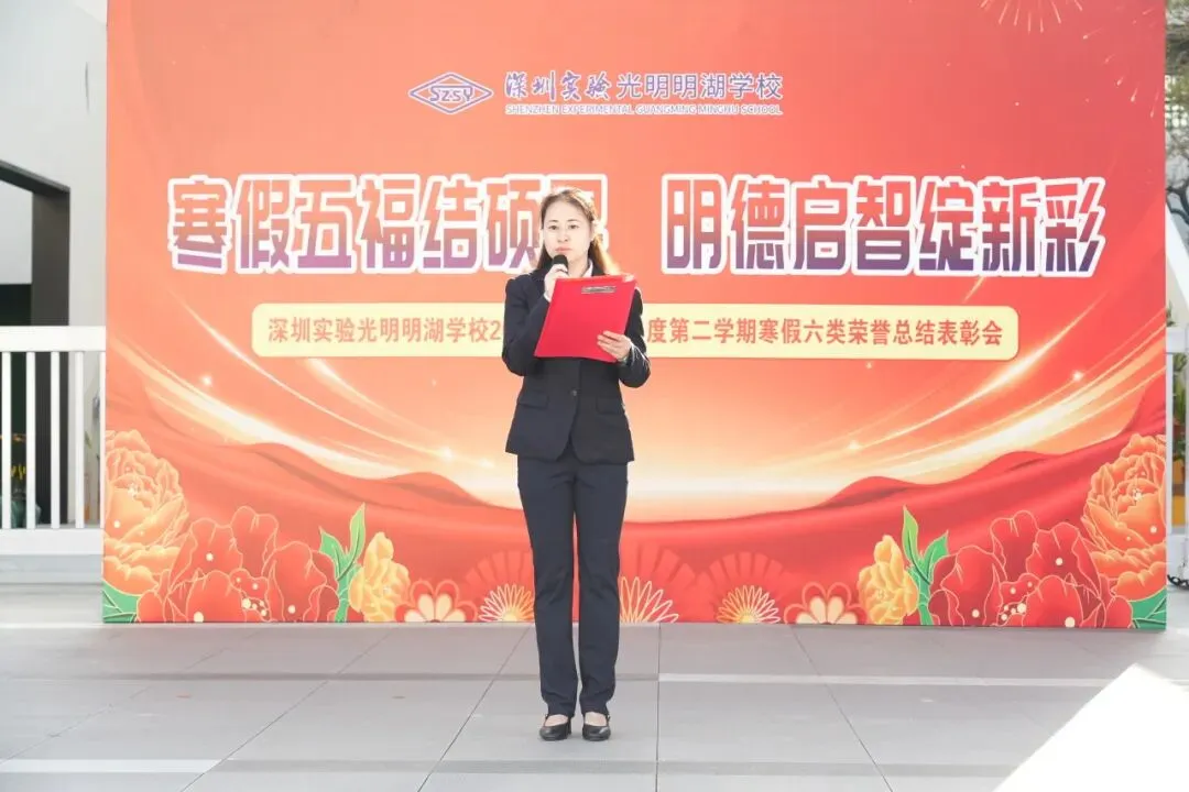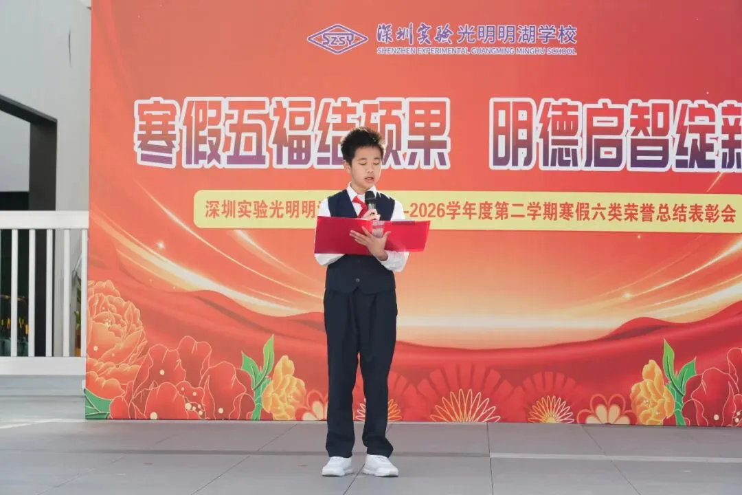 晨会在庄严的国歌声中正式拉开帷幕。学生处艾姗娜主任首先宣读寒假六类荣誉表彰决定,对在“可爱书虫”“环保达人”“作业标兵”“特长超人”“爱心天使”“优雅学子”六大领域表现优异的学生,以及午唱、两操、卫生、礼仪四类示范班集体进行表彰,以榜样力量引领全体学子向上成长。