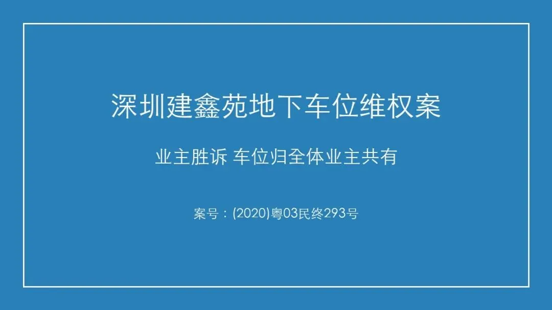 开发商不服一审判决,向深圳市中级人民法院提起上诉。2020年,深圳市中级人民法院作出终审判决:驳回上诉,维持原判,确认建鑫苑小区的地下停车位归全体业主共有。