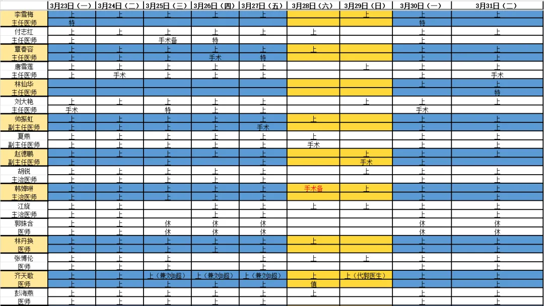 深圳市妇幼生殖中心(3月23日—3月31日)医生排班表