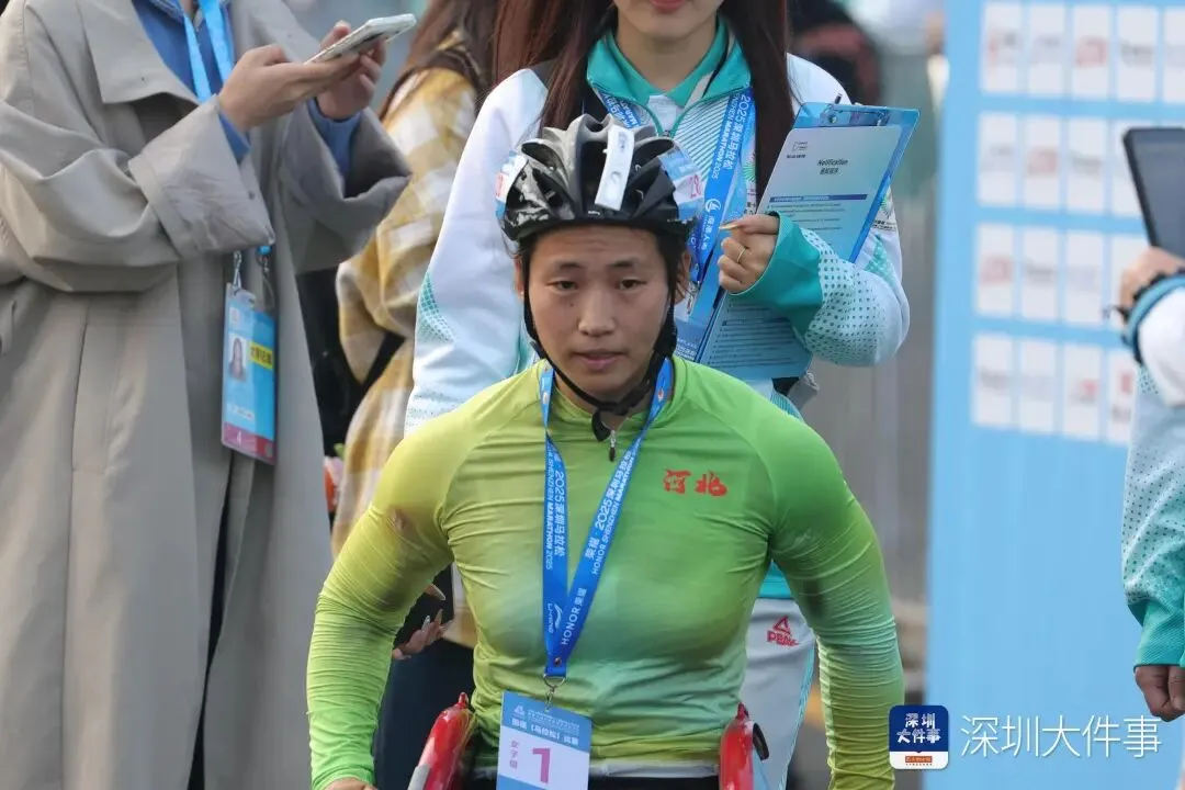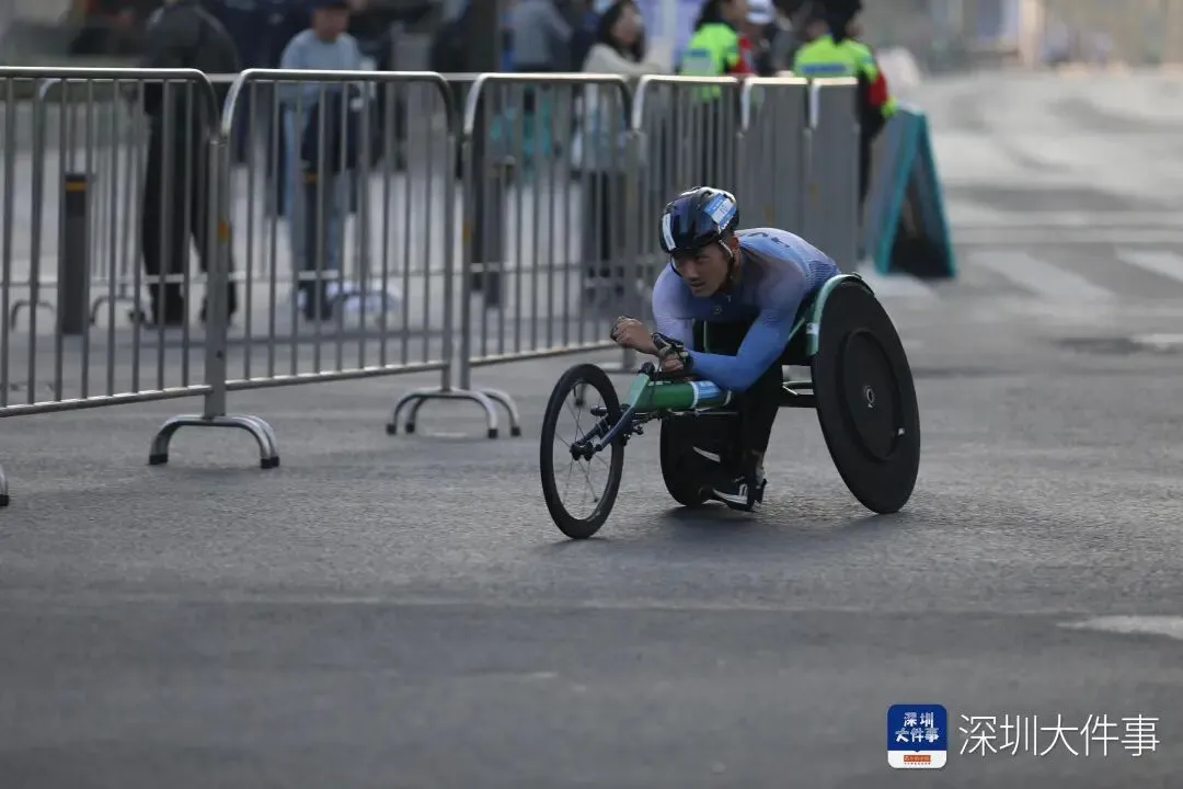 在率先发枪的全程马拉松T54级(竞速轮椅)比赛中,男子组决赛冲线阶段上演了惊心动魄的对决。来自辽宁的选手金华以1小时27分04秒的成绩率先冲过位于宝安区海滨广场的终点线,勇夺金牌。上海选手罗兴传以1小时27分05秒的成绩紧随其后,两人成绩仅差1秒,展现了顶尖选手间极致的速度与技巧。另一名上海选手代云强以1小时30分02秒获得季军。