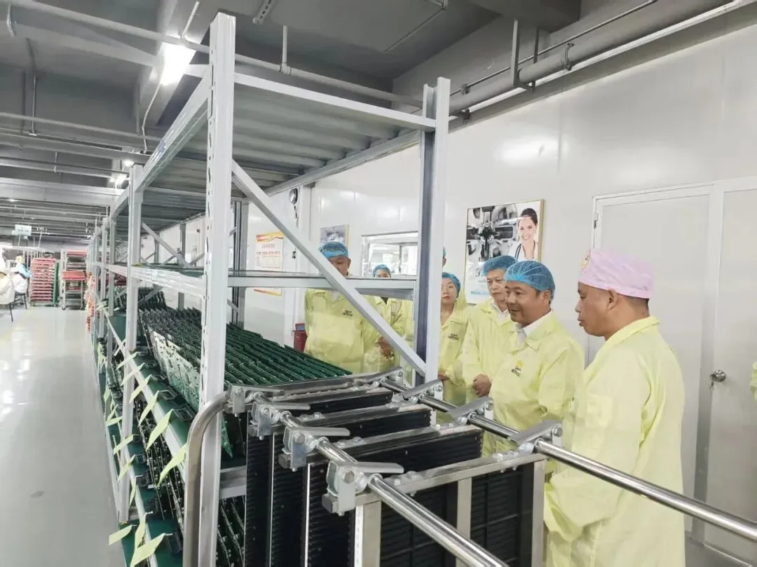 在靖邦电子有限公司,李坤深入生产车间考察了企业在电子电路制造、精密元器件等领域的生产工艺、技术研发实力与市场应用情况,对其在专业细分领域取得的成就表示关注。李坤重点介绍了阳东区“1+3+3+X”现代化产业体系及优质营商环境,他表示,靖邦电子的产品方向与阳东区现有的智能家电、低空经济等产业高度契合,双方合作空间广阔,期待与企业在电子电器领域深化合作,实现互利共赢。