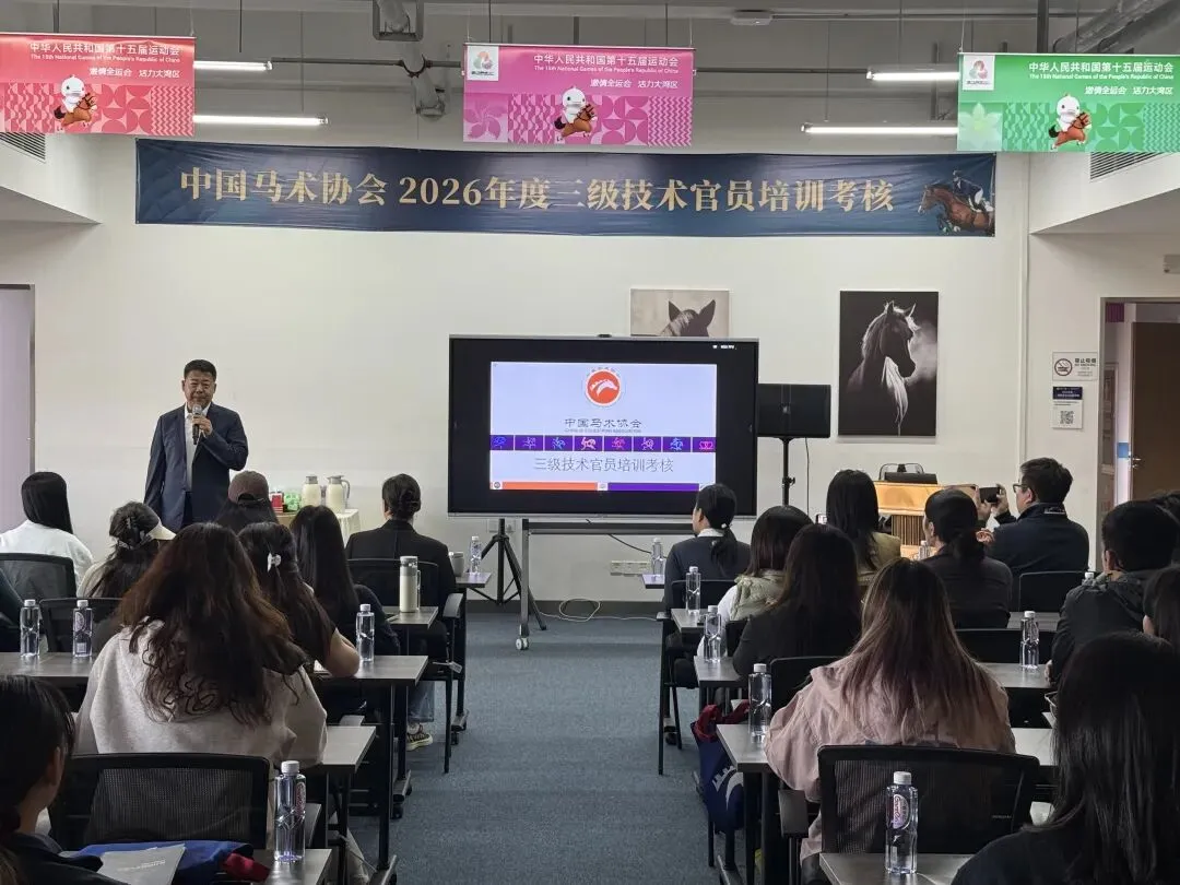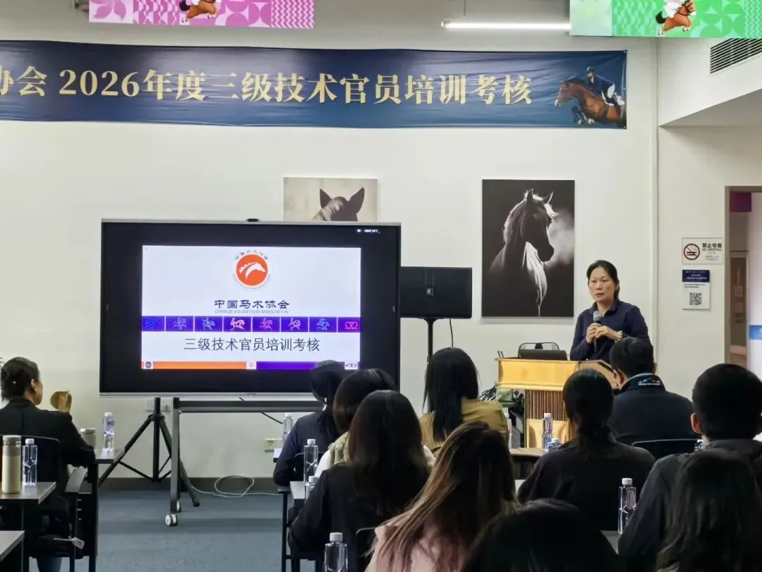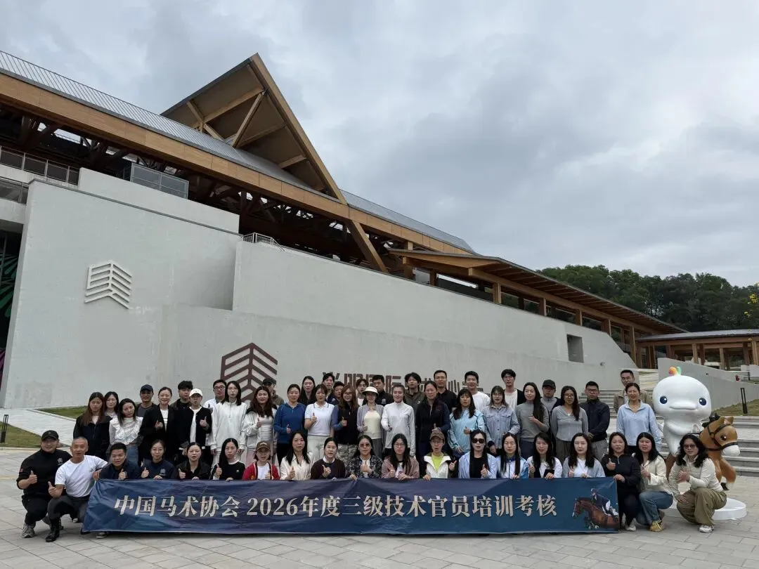 为夯实马术赛事人才根基,规范赛事执裁标准,助力广东马术运动高质量发展,近日,中国马术协会2026年三级技术官员培训考核课程在深圳光明国际马术中心顺利举办。来自北京、上海、重庆、香港和广东各地的52名马术从业者、爱好者齐聚一堂,系统学习执裁规范与最新竞赛规则,以专业能力赋能广东马术事业。