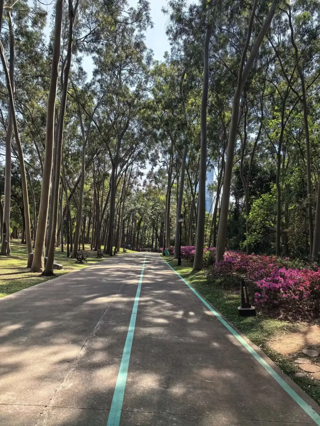 深圳的各个小区之间有一些宝妈组织,大家组队一起去爬山,深圳的绿道特别的多,链接着山与海,鲲鹏径分为很多段,大家每天爬一段,刷完一遍要花几个月甚至一年,刷完一遍再来一遍。每一段的风景都不一样,每一次的花也开得不一样。
