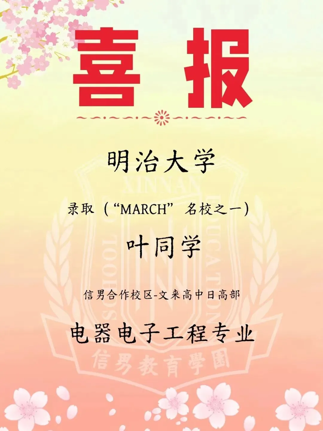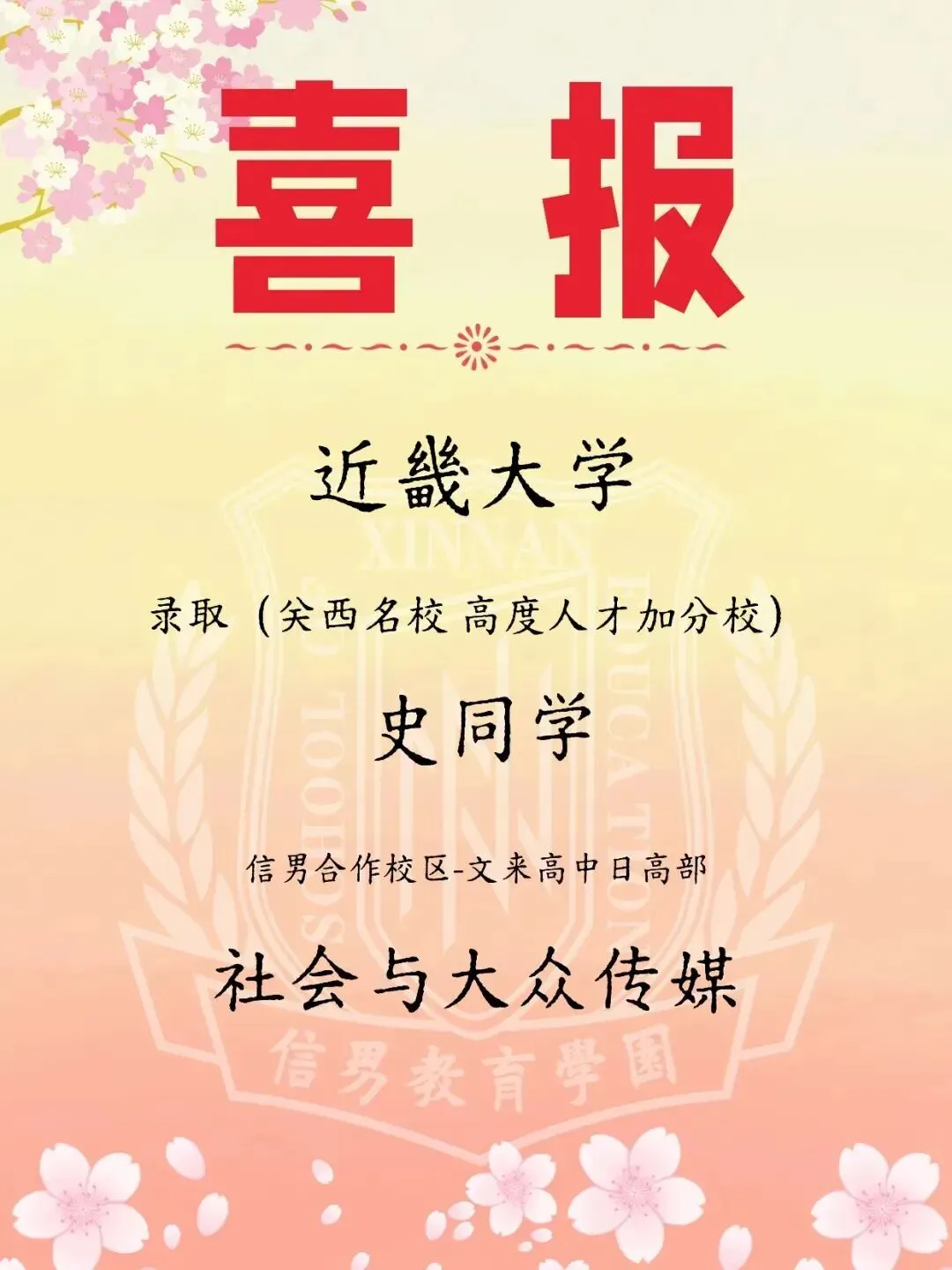 本次喜报不仅展现了同学们文理学科的全面实力,更凸显了同学们升学路径的多元——无论是通过指定校推荐录取,凭借EJU(日本留学考试)斩获,还是以全额奖学金公募的方式敲开大学之门,同学们以最适合自己的形式,赢得了同样璀璨的未来。