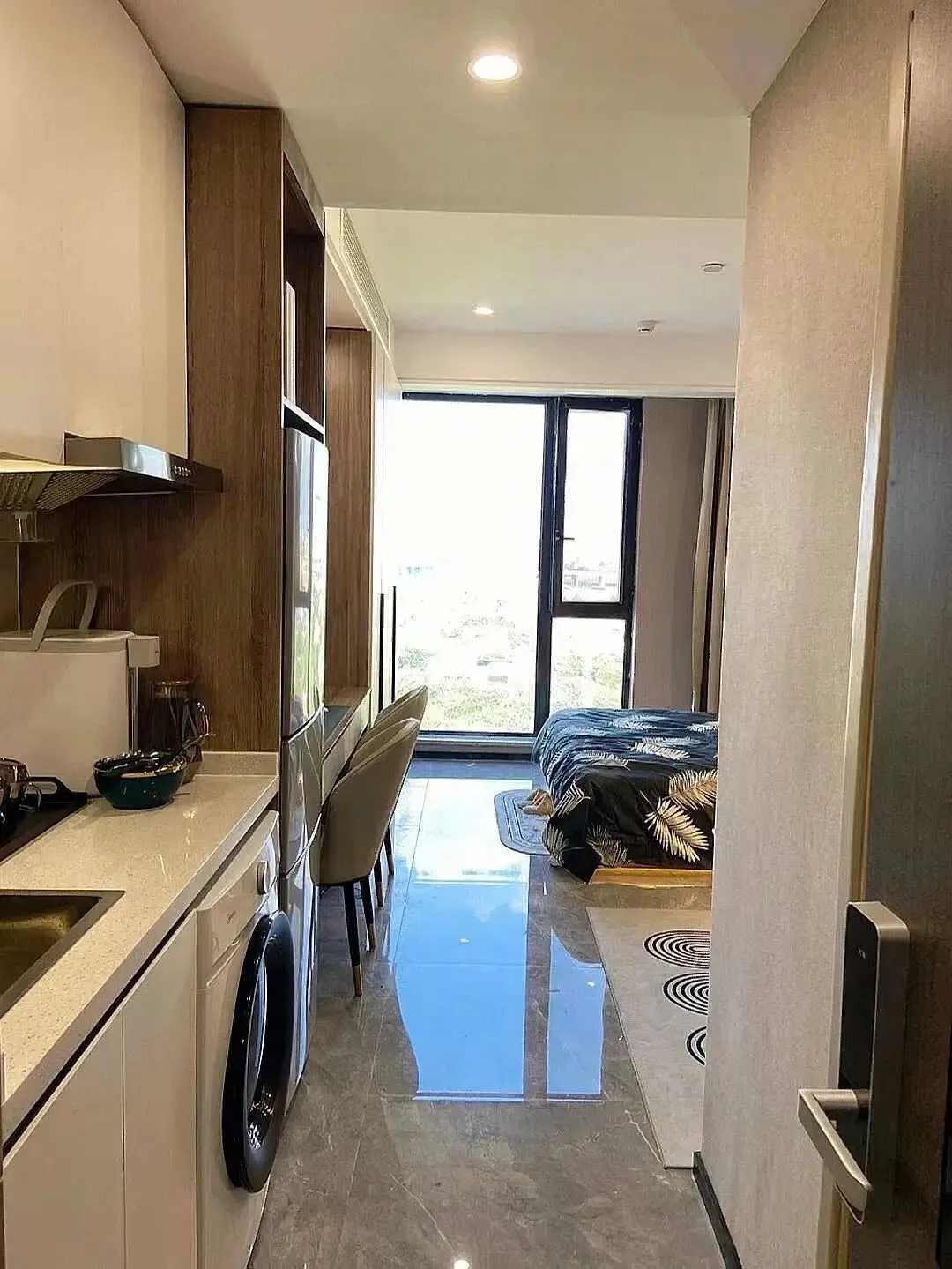 房源拥有独立厨房、独立阳台、门店公区及智能硬件配套(智能门禁门锁、智能电表、智能水表)。