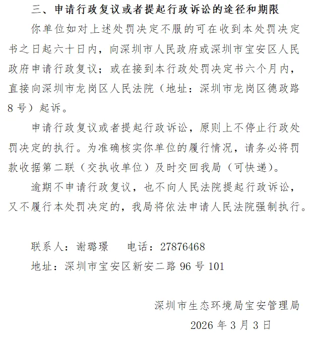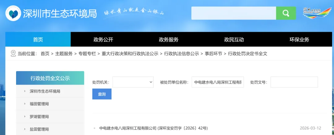 近日,深圳市生态环境局发布了一则行政处罚决定书。