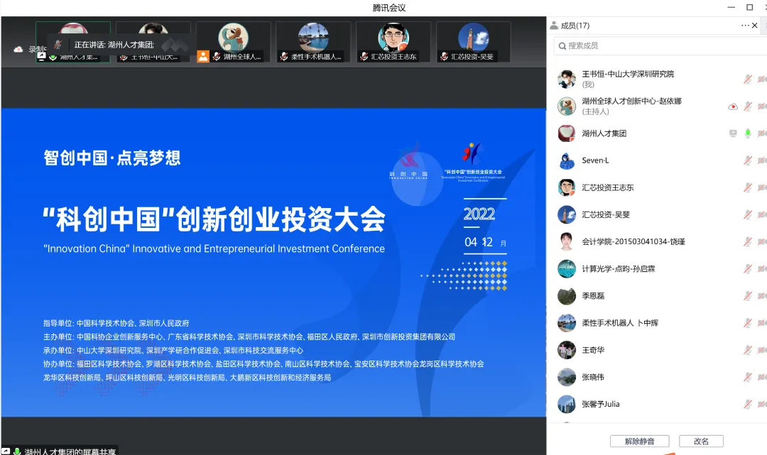 2022年10月25日下午,中山大学深圳研究院成功举办"科创中国"创新创业投资大会(2022)专场线上路演。
