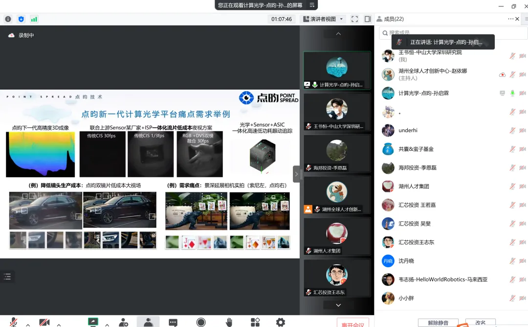本场路演中,邀请了未来医疗科技有限公司、点昀技术、中科微智(北京)生物科技有限公司、元衣科技、HelloWorld Robotics,5个项目进行路演推介,项目涵盖主要为生物医药,高端装备制造、新一代信息技术等领域。同时邀请启迪之星创投、一度资本、海邦沣华创投、汇芯投资、浙江松光资产等5家个投资机构代表进行路演点评与指导。