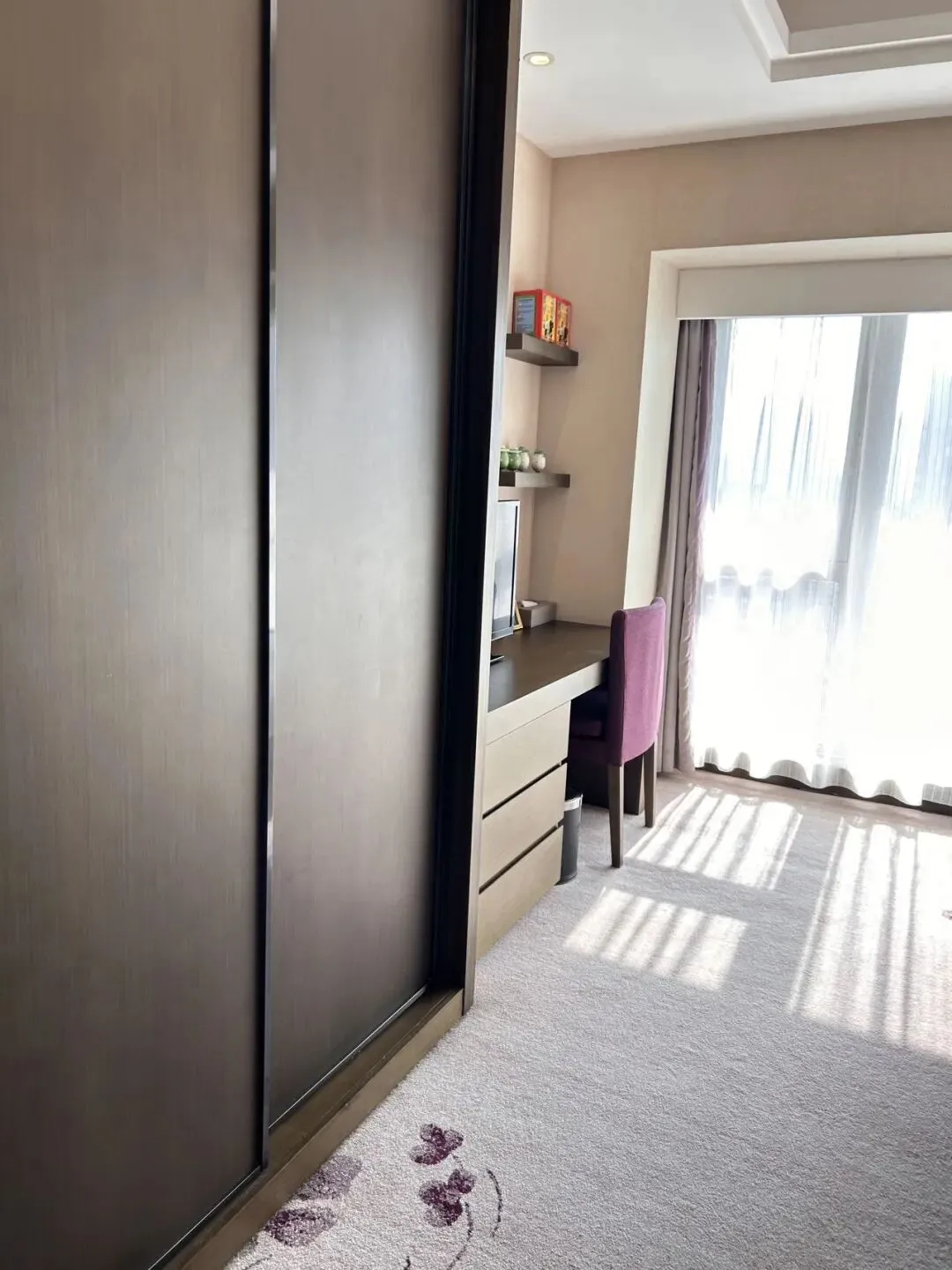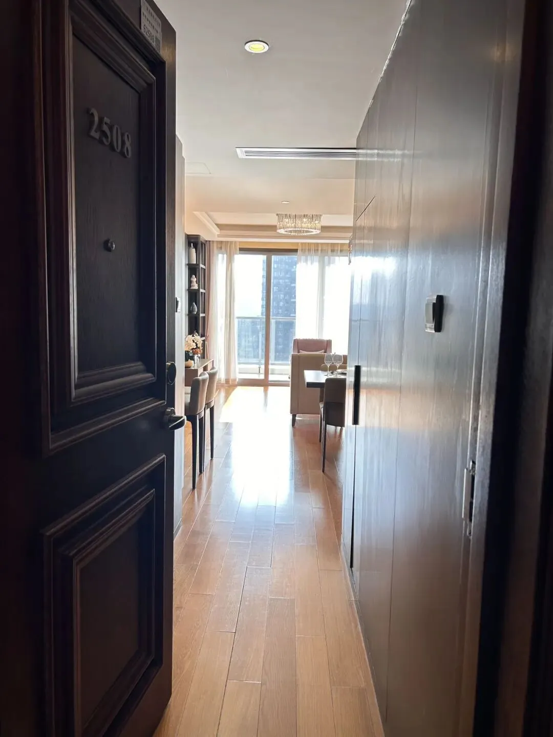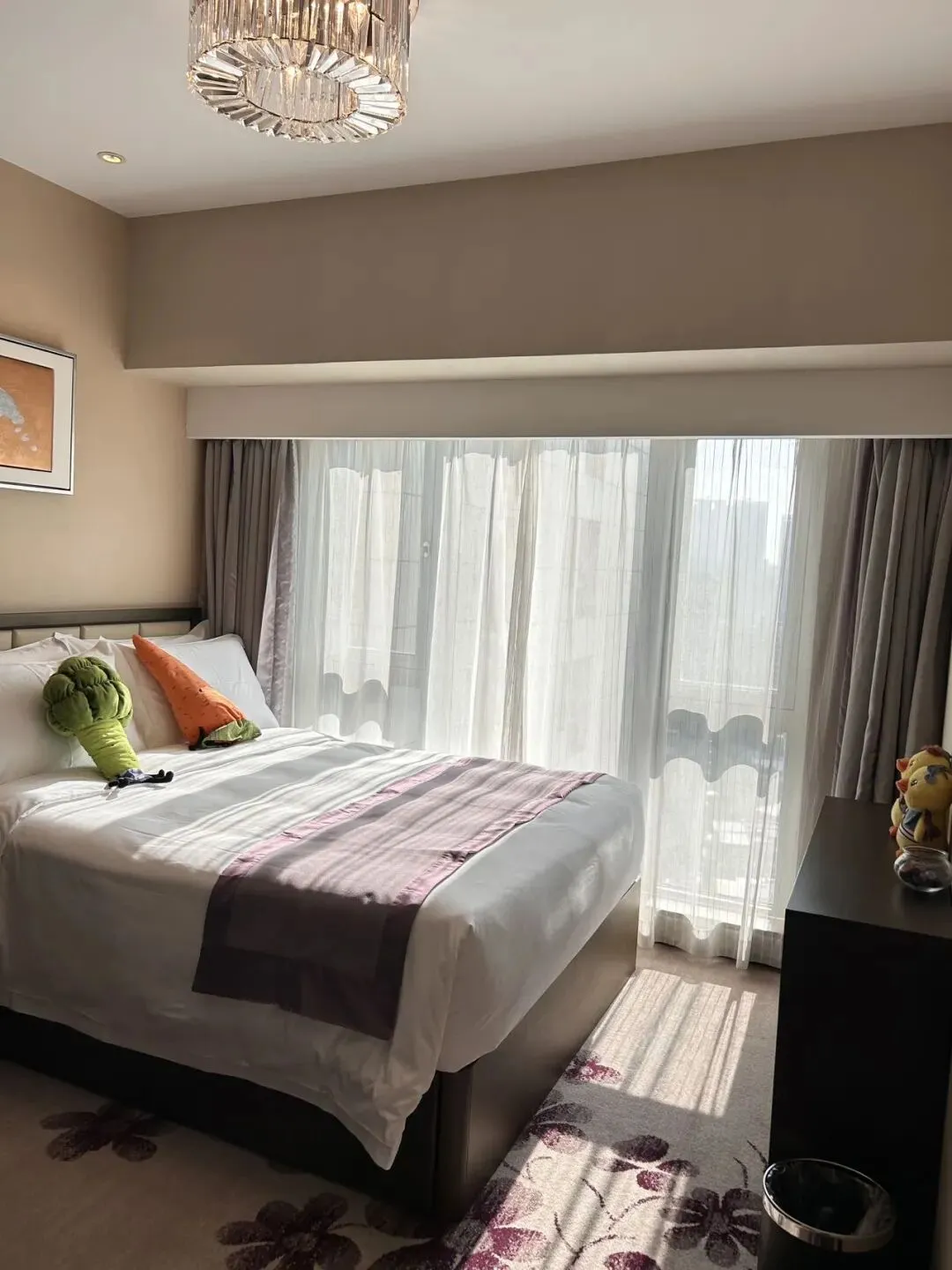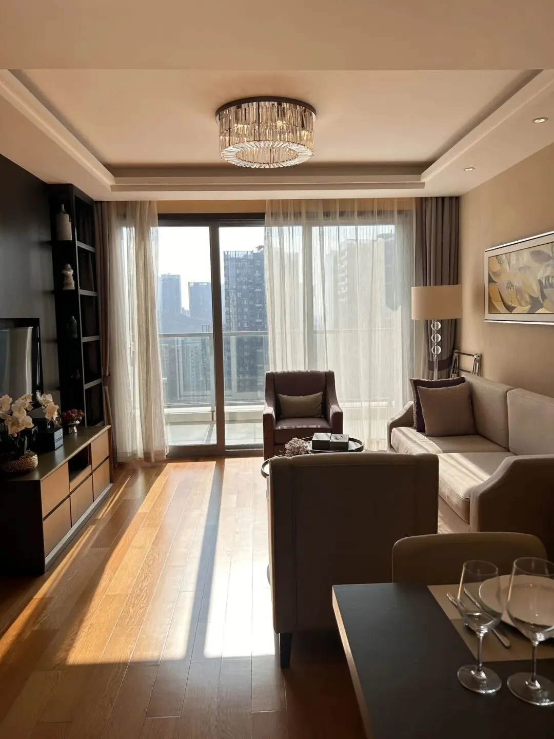 💁🏻♀️ドアを開けると部屋いっぱいに日の光が差し込み、部屋全体を一層温かみのある空間に包み込みます。また部屋の家具は質感が良く清潔感があり色合いも統一されています。そばには大きなバルコニーがあり、きれいな街並みを見渡すことができます。