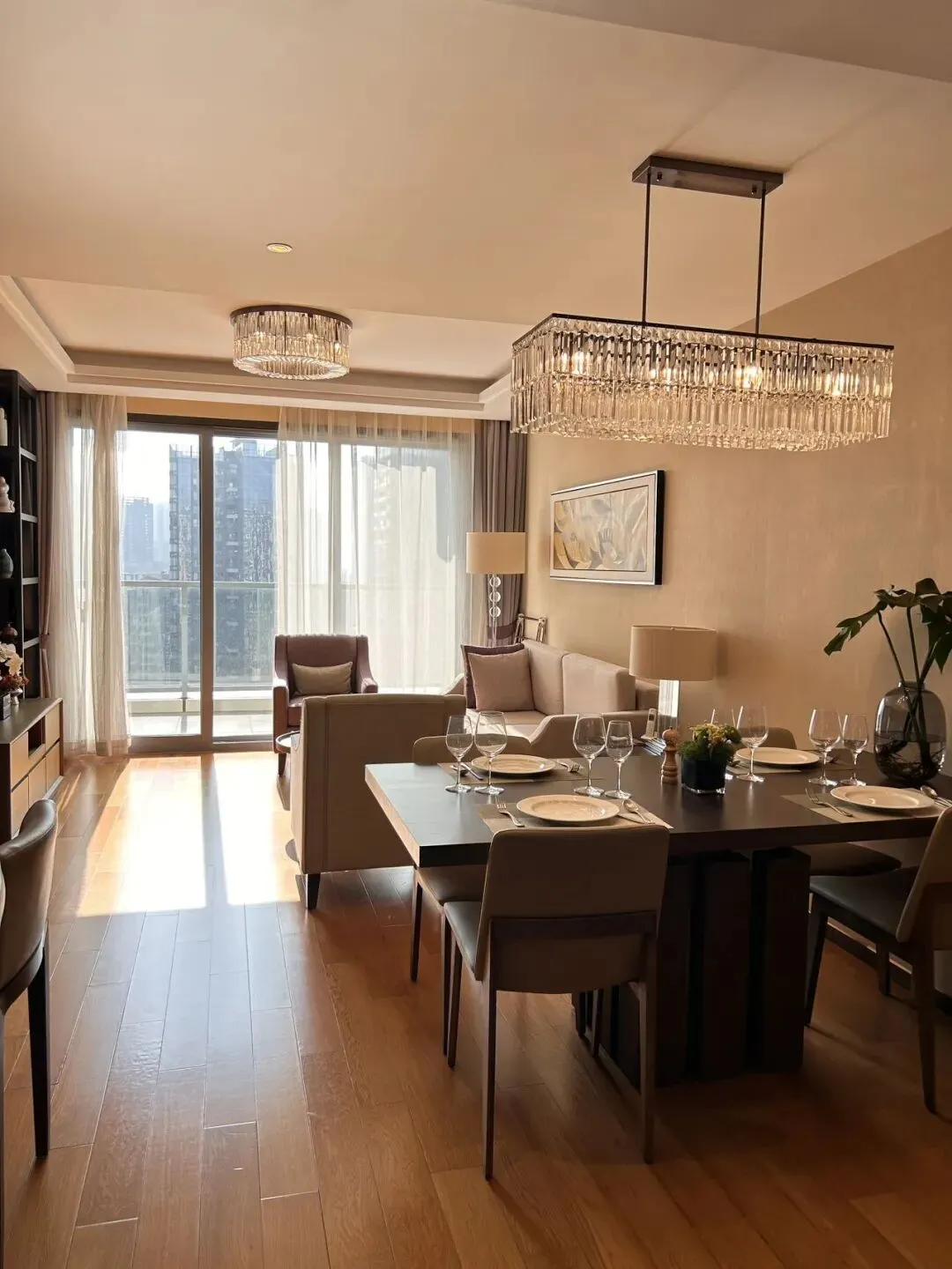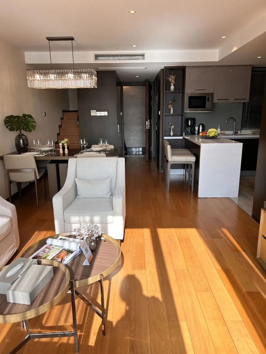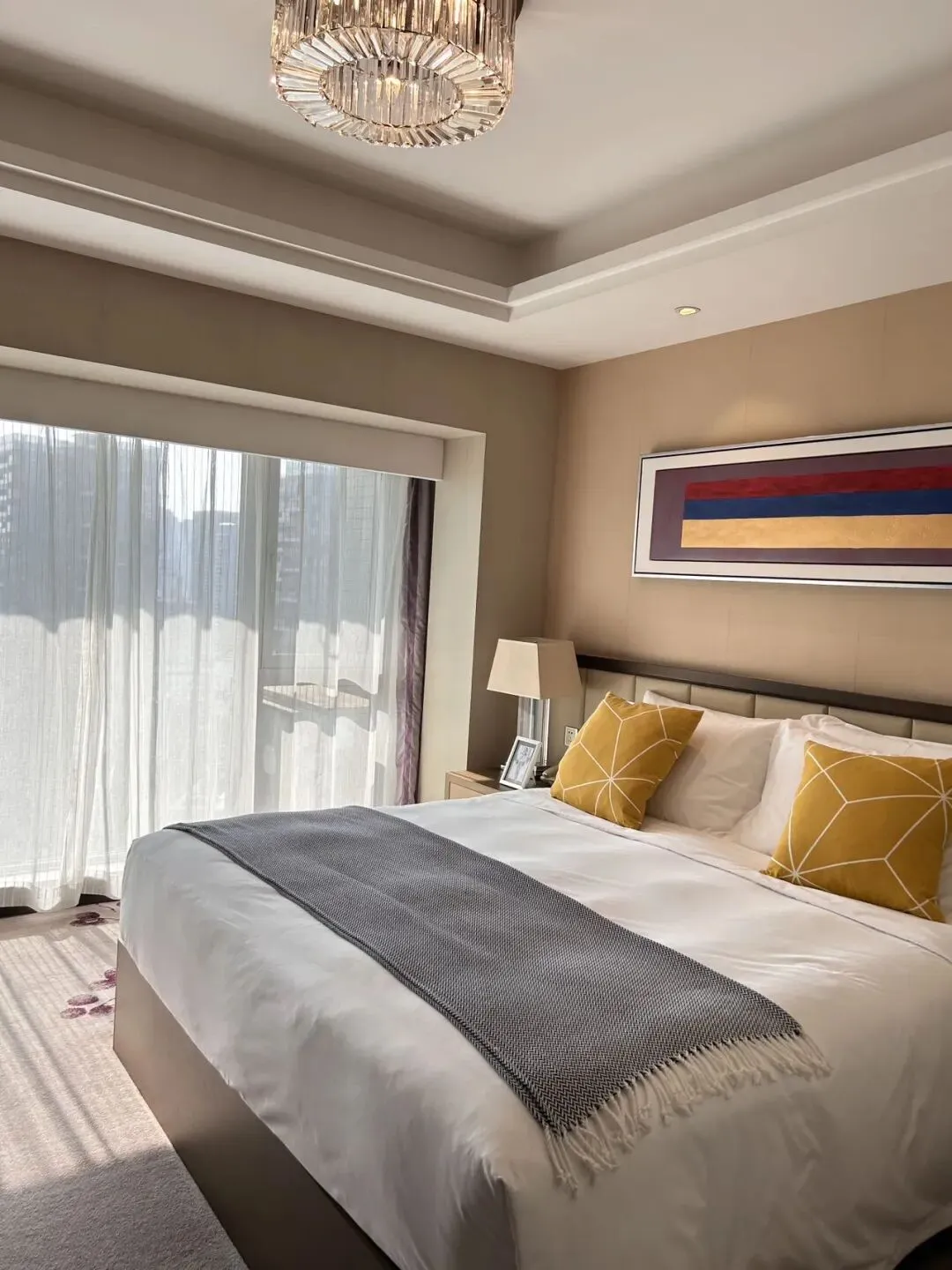 💁🏻♀️ドアを開けると部屋いっぱいに日の光が差し込み、部屋全体を一層温かみのある空間に包み込みます。また部屋の家具は質感が良く清潔感があり色合いも統一されています。そばには大きなバルコニーがあり、きれいな街並みを見渡すことができます。