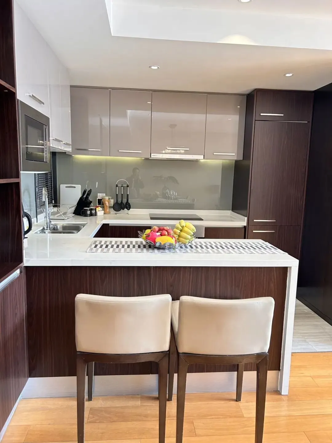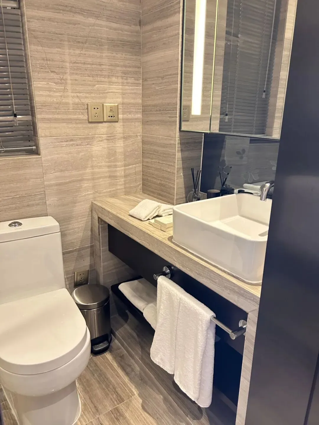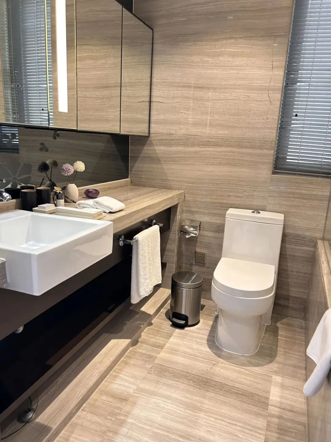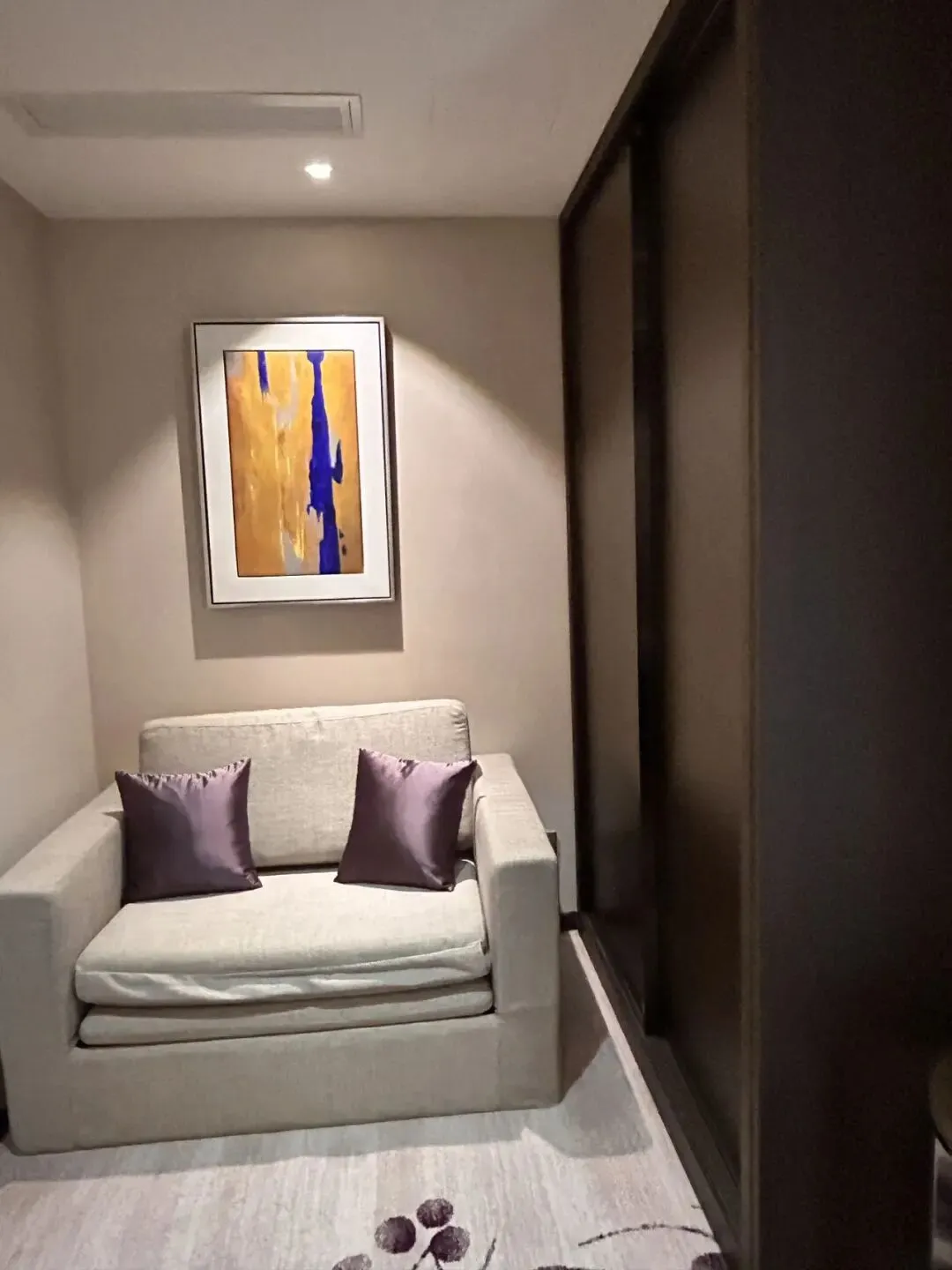 💁🏻♀️ドアを開けると部屋いっぱいに日の光が差し込み、部屋全体を一層温かみのある空間に包み込みます。また部屋の家具は質感が良く清潔感があり色合いも統一されています。そばには大きなバルコニーがあり、きれいな街並みを見渡すことができます。